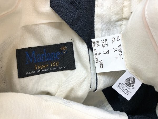Marlane メンズ ウール ツータック スラックスパンツ 79 ネイビー です。