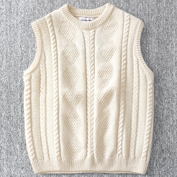 新品 DCKMANY 上品 ウール混 アラン編みジャカード 袖なし ベスト 秋冬 メンズ クルーネック ニットベスト 快適 暖かい ニットセーター  トップス ベージュ T1182-2XL