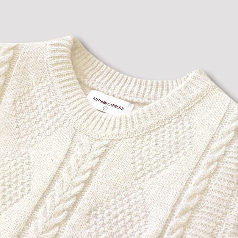 新品 DCKMANY ウール混 アラン編みジャカード 袖なし ベスト 秋冬 メンズ クルーネック ニットベスト 暖かい セーター ベージュ T1182-2XL