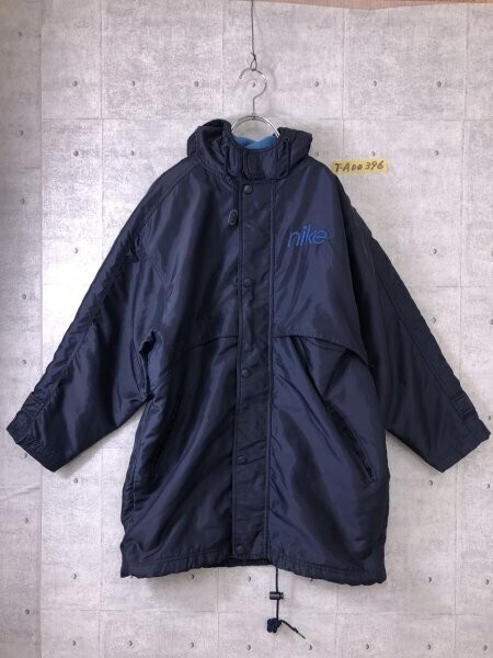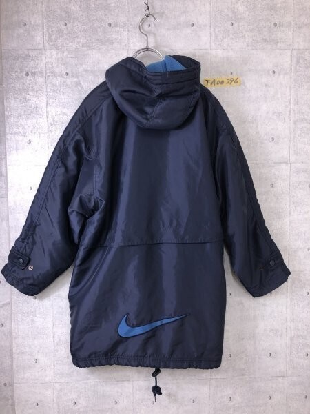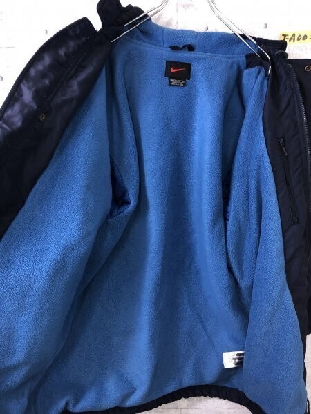 NIKE ナイキ キッズ ロゴ刺繍 裏フリース フード付き ダブルジップ コート M 紺 です。