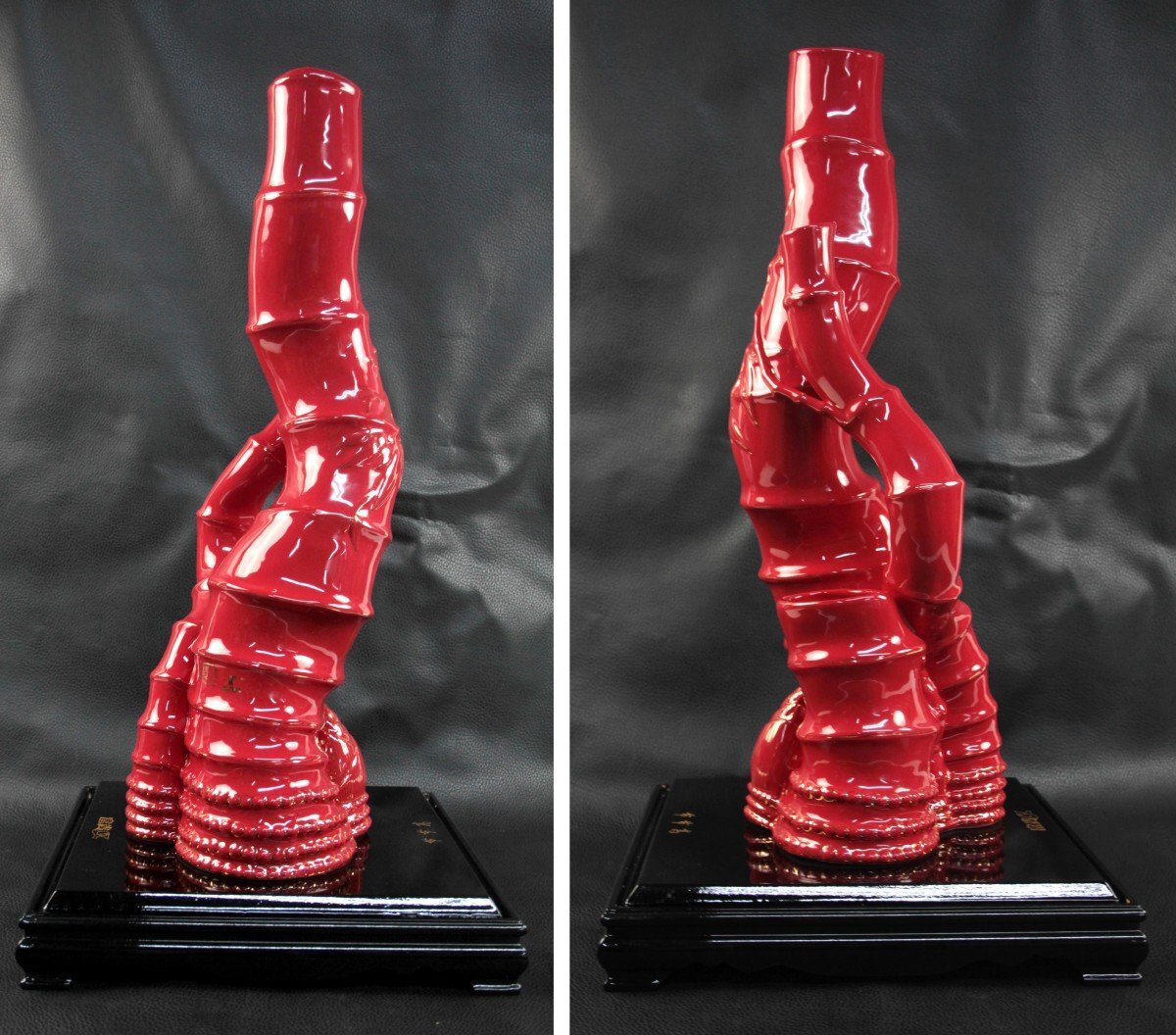 | ▼商品名 | 富貴紅 FUGUIHONG 盛世・国宝 竹 陶器 陶磁器 赤釉 赤色 紅色 金彩 オブジェ 置物 貴重品 珍品 工芸品 中国美術 芸術 コレクター |