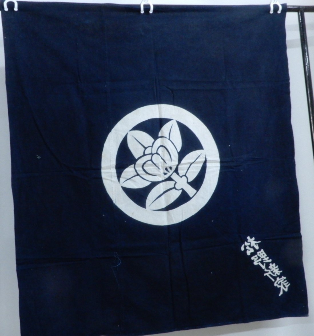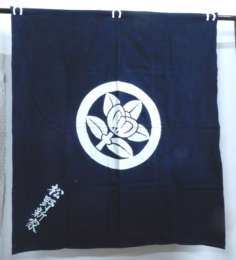 <銀の斧>木綿・大正期藍木綿・紋筒描・丸に橘・121cm×107cm