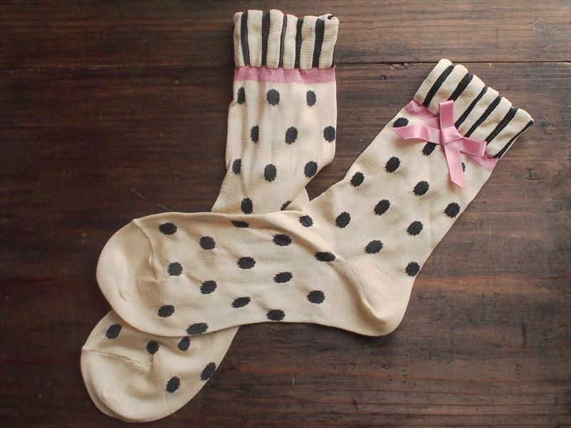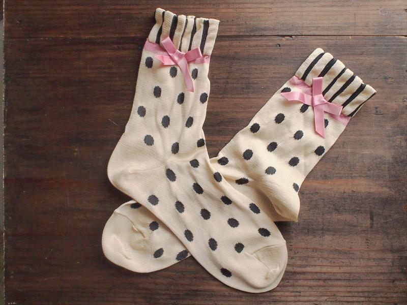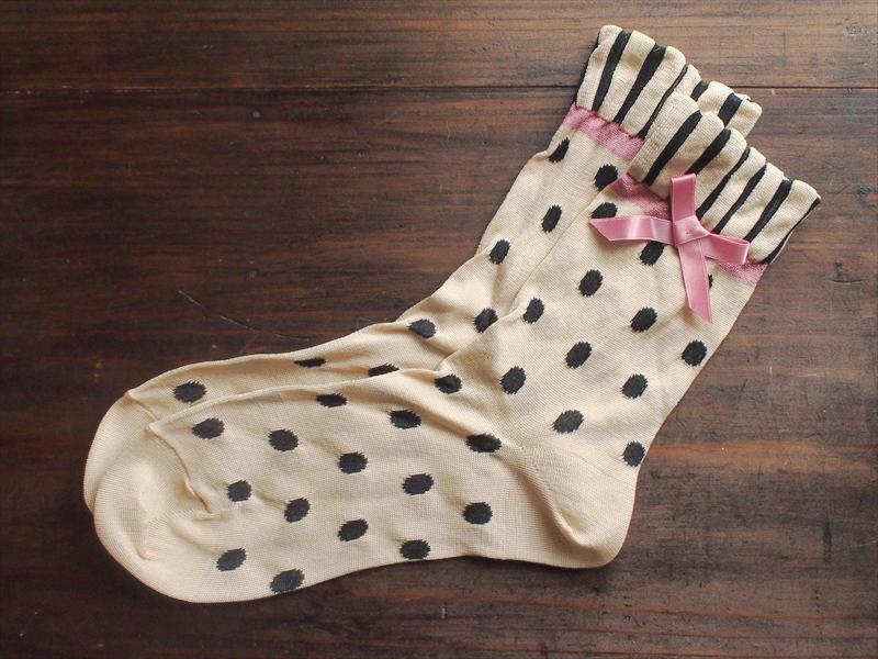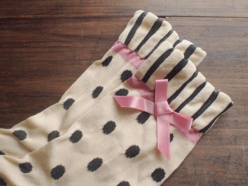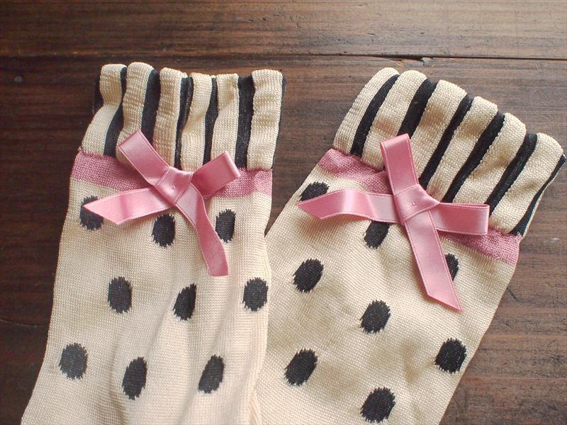 未着用長期保管品☆水玉リボンのおしゃれな靴下☆ソックスお出掛け発表会パーティー