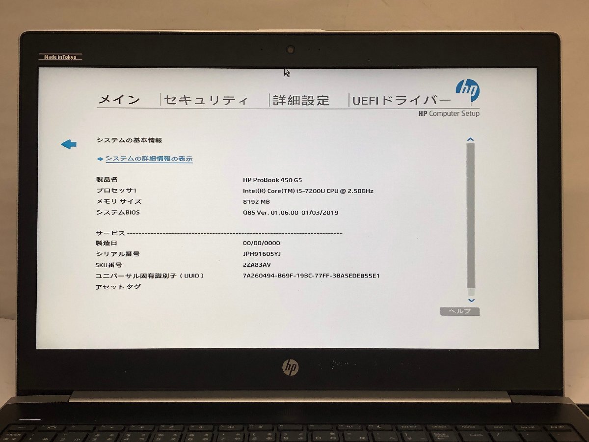 ジャンク/ HP HP ProBook 450 G5 Intel Core i5-7200U メモリ8.19GB ストレージ無し 【K23977】