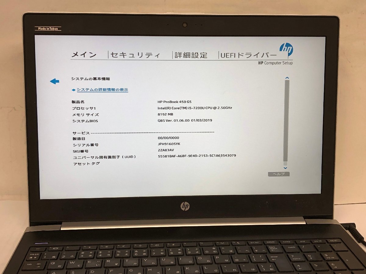 ジャンク/ HP HP ProBook 450 G5 Intel Core i5-7200U メモリ8.19GB ストレージ無し 【K23959】