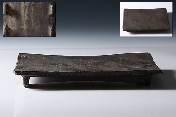 SP1644 石原稔久 父 石原祥嗣 黒刷毛目 足付皿 板皿 角皿 工房 一石 検) ほぼ日 百草 ももぐさ