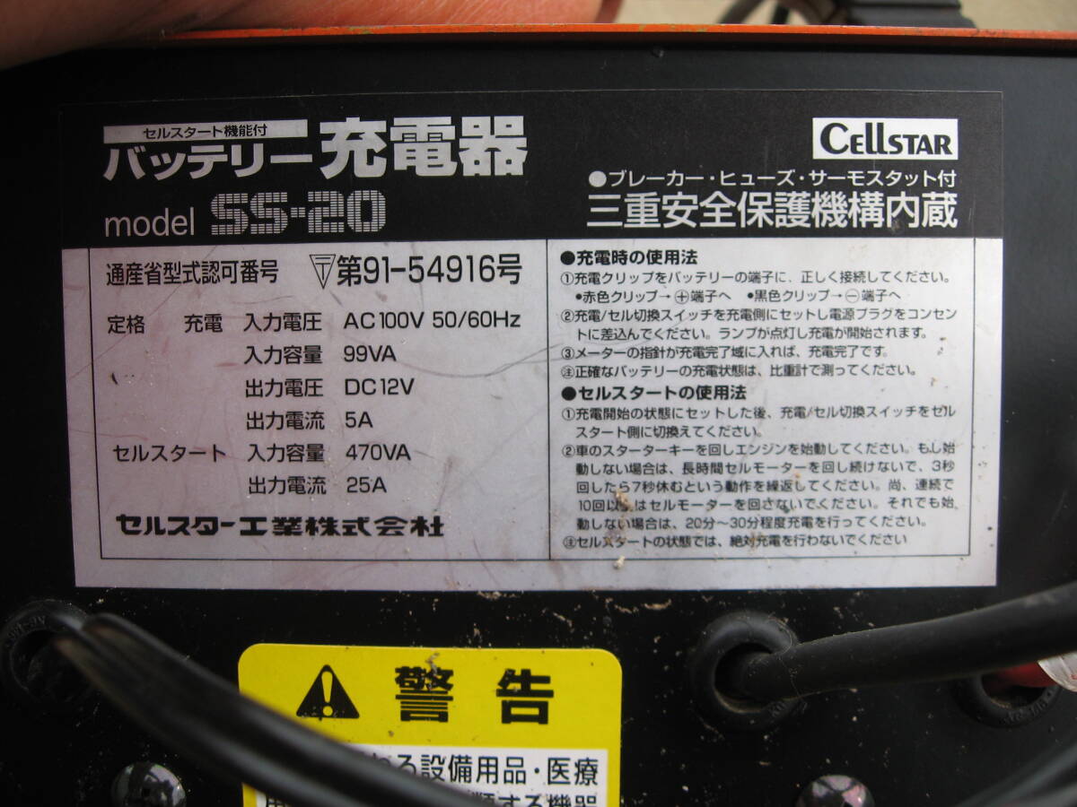 SATU568 セルスター バッテリー充電器 SS-20 中古 セルスタート機能付き 同梱Ok