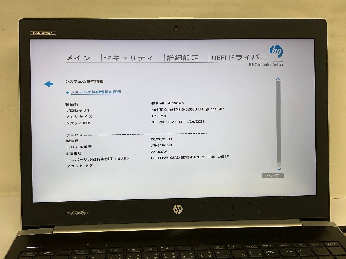 ジャンク/ HP HP ProBook 450 G5 Intel Core i5-7200U メモリ8.19GB ストレージ無し 【K23962】