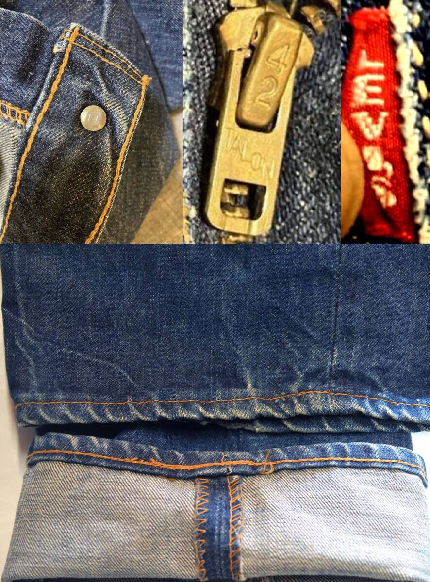 60'sの505ビッグEです。復刻、レプリカではありません。『ディテール紹介』フロントボタン裏の刻印14、タロン42ジッパー、裾オリジナルチェーンステッチ、バックポケットにイエロー綿糸が使用されています。『状態』バックに小穴を直した小さなリペア2つ、その他=スレ、キズなどUSED感があります。生地はしっかりしており、ヴィンテージとして程度良好です。 『色落ち、特徴など』色落ちは抜群にかっこよく、ビッグE特有の非常に深みのあるインディゴで、全体に綺麗な縦落ちが見られます。ヒゲも綺麗に入っており、抜群の風合いです。 小リペアはありますが、ガンガン穿ける状態です。なかなかでないサイズです。大柄の方に。