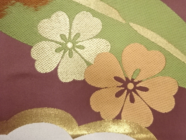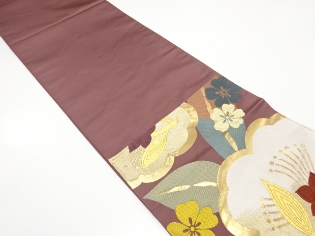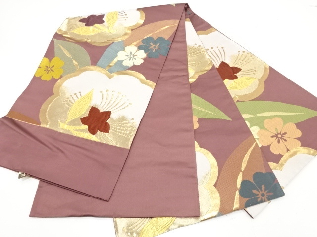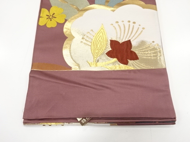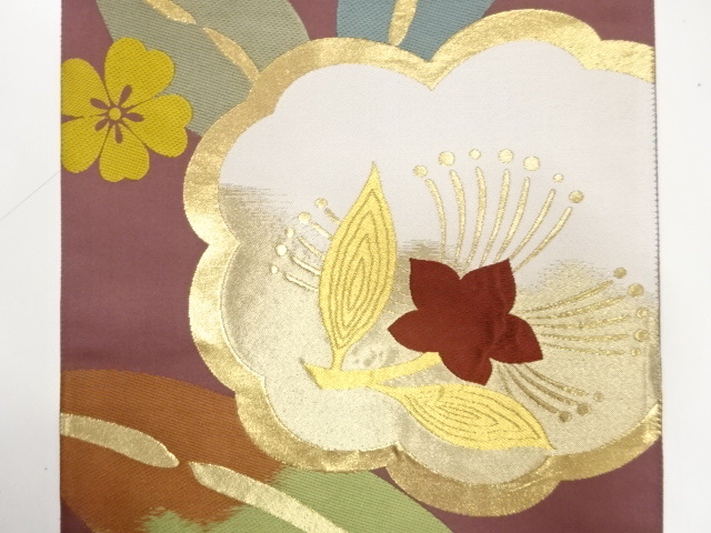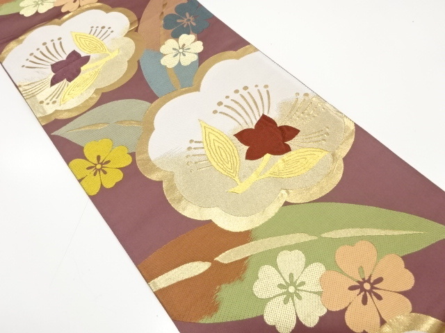 美品 未使用品 椿に桜模様織り出し 振袖用 袋帯 (未仕立て) (AAE2K-005)