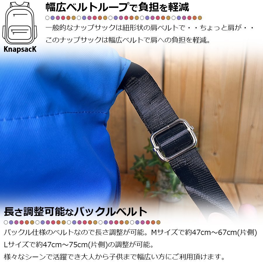 | ・多機能ポケットを搭載したグラデーションナップサック。 ・POPなカラーから大人カラーまで幅広い6色展開。 ・2サイズ展開にサイズ調整ベルトにより子供から大人まで使えるナップサック。※各サイズは別販売ページになります。 ・両サイドにはボトルホルダーポケット。センターにはジップ仕様のポケットを搭載。 ・独立型ポケットへアクセスできるサイドジッパーを搭載。 ・大きな開口部でメインコンパートメントへ簡単アクセスが可能。 ・内部ポケットも搭載。ジッパー仕様なので貴重品の保管にも◎ ・撥水生地なのでジムワーク・プールなどにもオススメです。 |