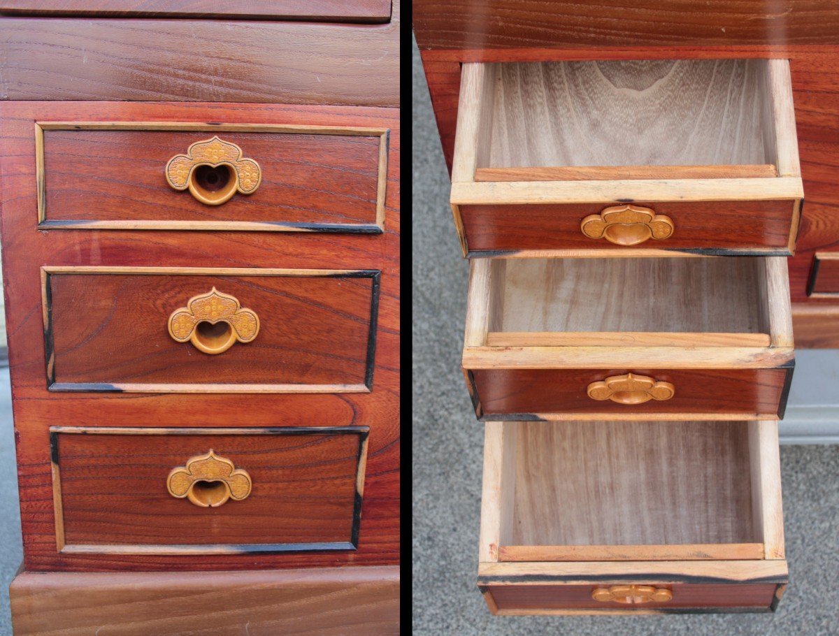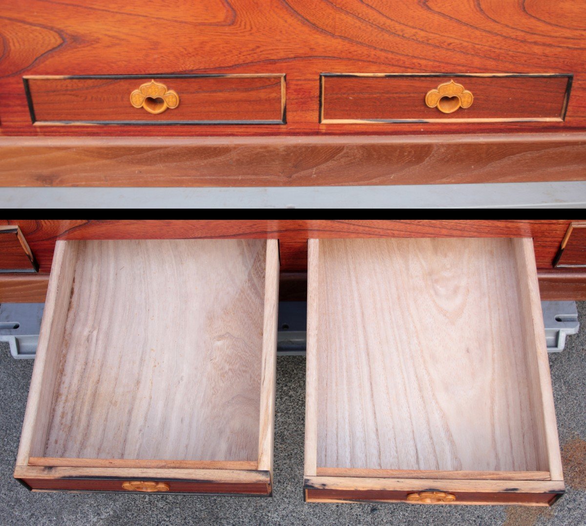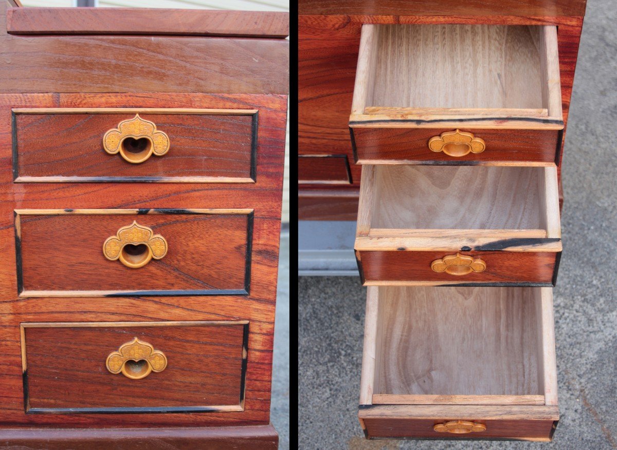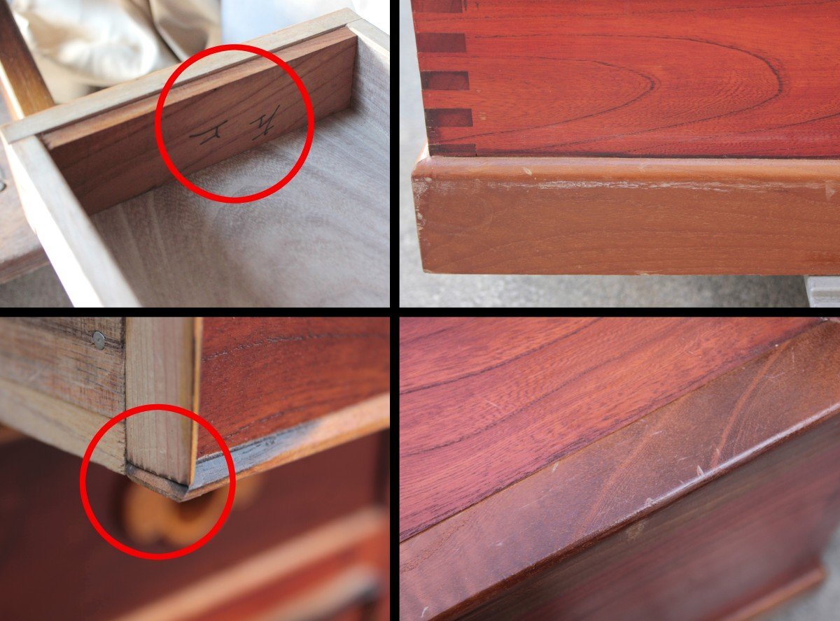 火鉢が入荷致しました。 全体的に擦り傷や多少の汚れ等の使用感が見られます。 全ての引き出しの裏面に左上や左下などの文字の書き込みが見られます。 引き出しに一箇所のみ補修跡が見られます。 詳しい商品状態につきましては写真よりご確認下さい。 この機会に是非ご検討宜しくお願い致します。 【詳細】