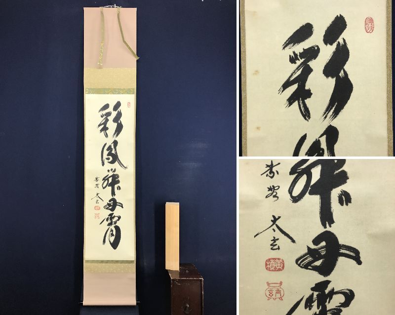 真作/大徳寺/小林太玄/一行書/彩鳳舞丹霄/茶道具/茶掛/禅語/掛軸☆宝船☆AK-335