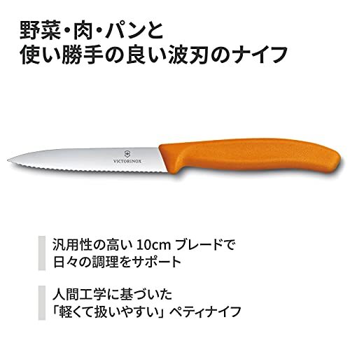 VICTORINOX(ビクトリノックス) ペティナイフ パーリングナイフ 波刃 10cm オレンジ スイスクラシック 果物ナイフ 皮むき 6.7