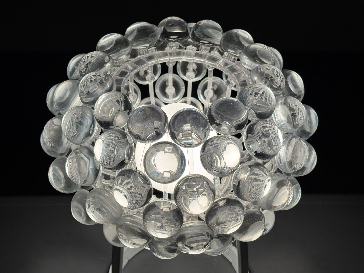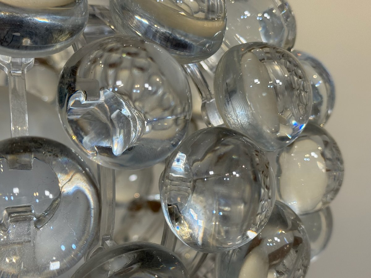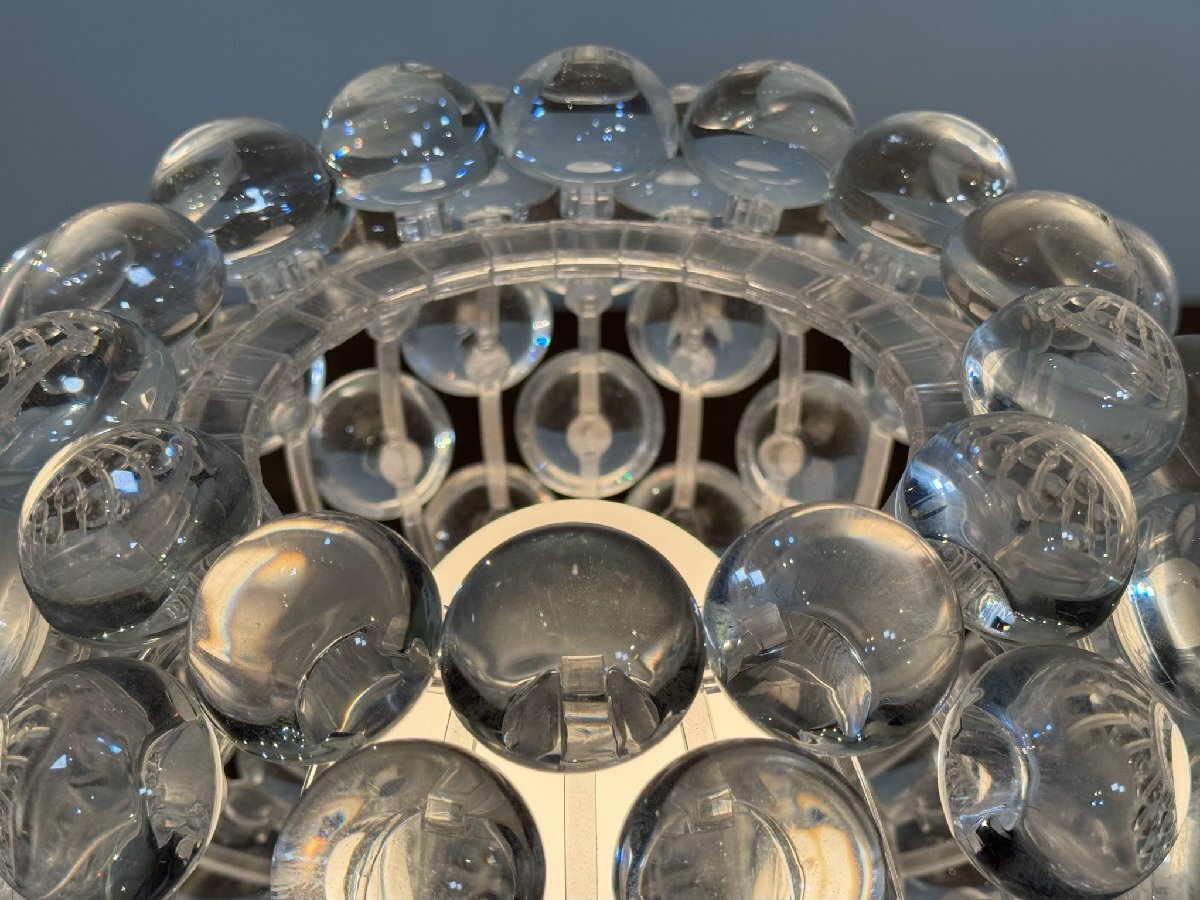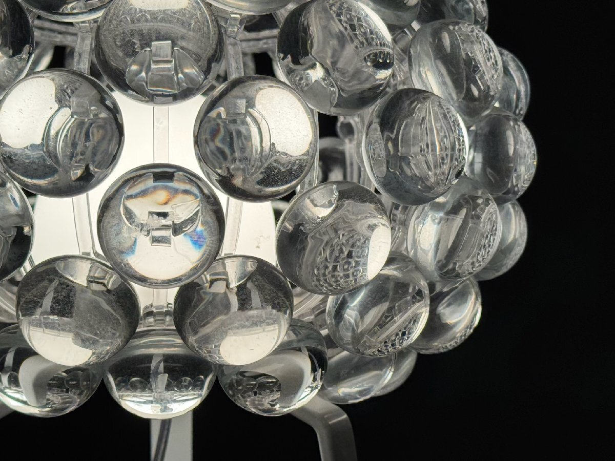 ガラスビーズを透過して輝くアイキャッチなデザインながら、どこか愛嬌や不完全さを孕んだデザインテイストは、インテリアデコレーションの要として強力。