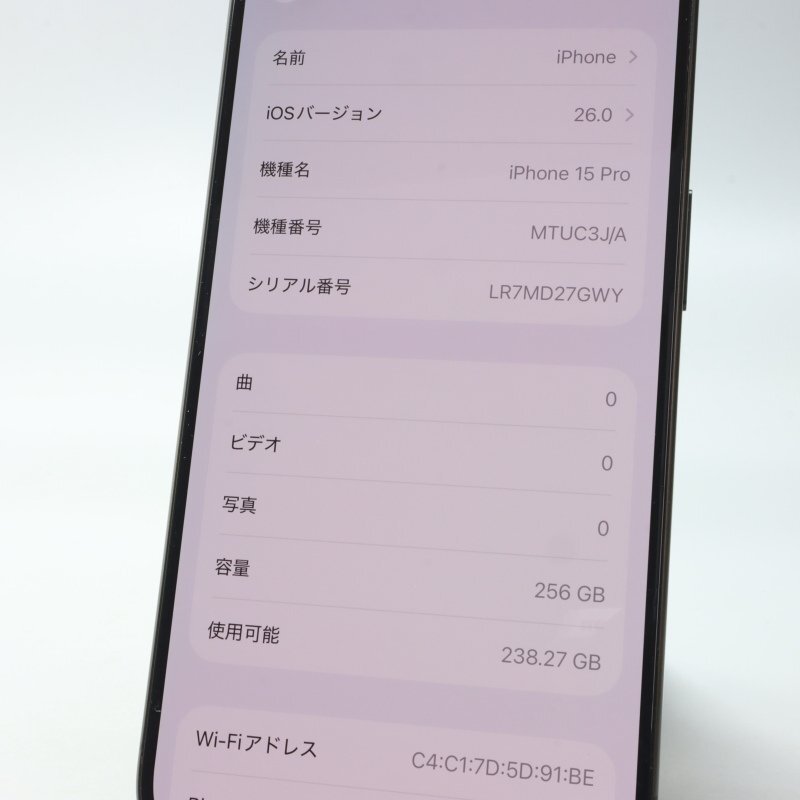 ■機種 : iPhone15 Pro 256GB ブラックチタニウム A3101 MTUC3J/A