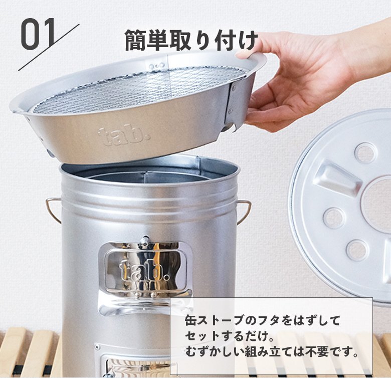 ・缶ストーブにセットして手軽にグリルが楽しめる拡張アイテム。