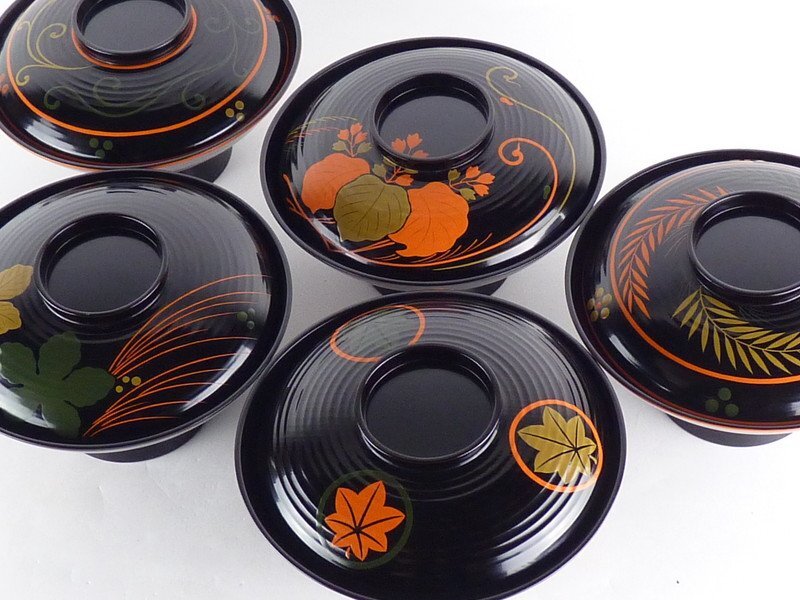 【扇屋】塗師 表哲「長寛写 絵替蒔絵 煮物椀」5客 共箱 A-1
