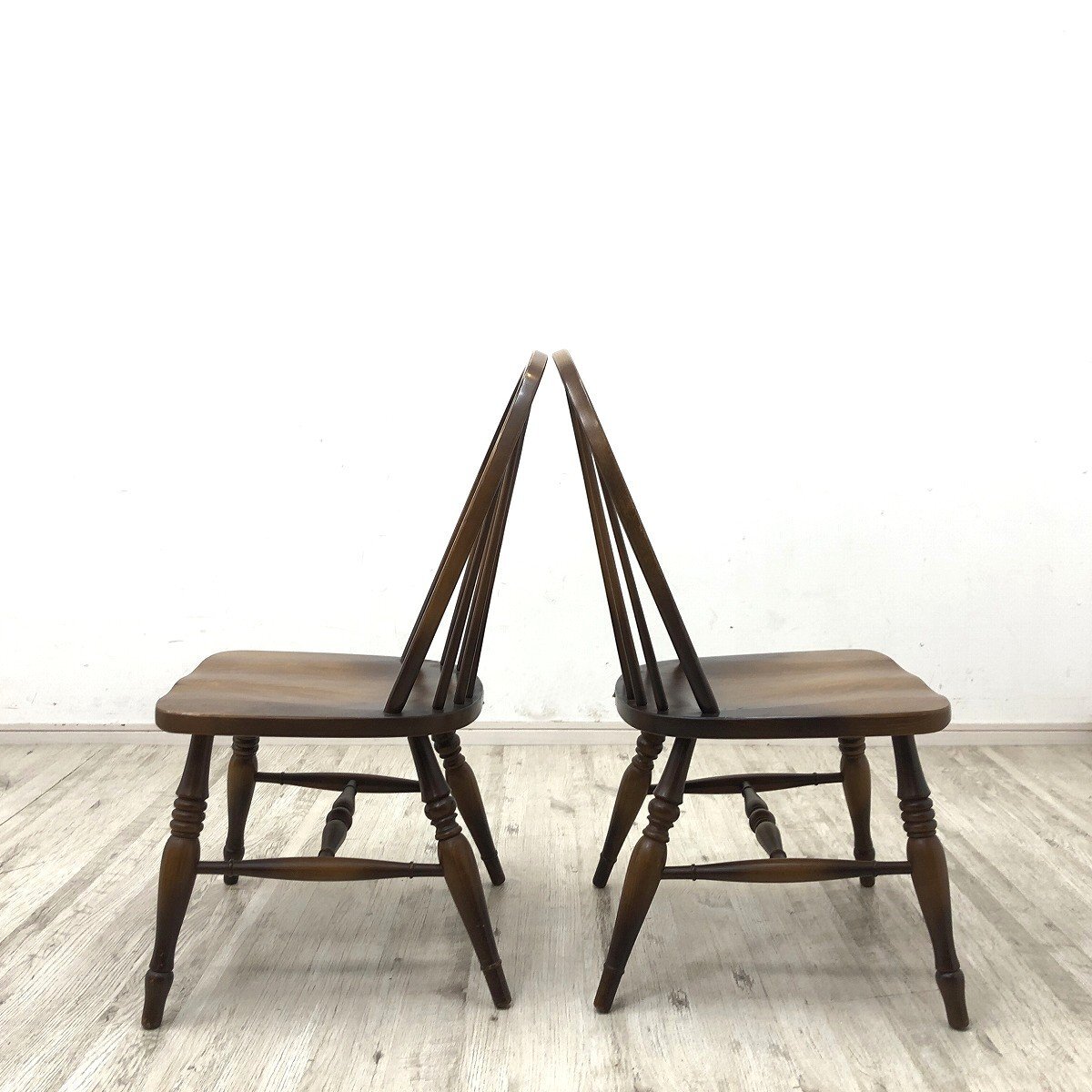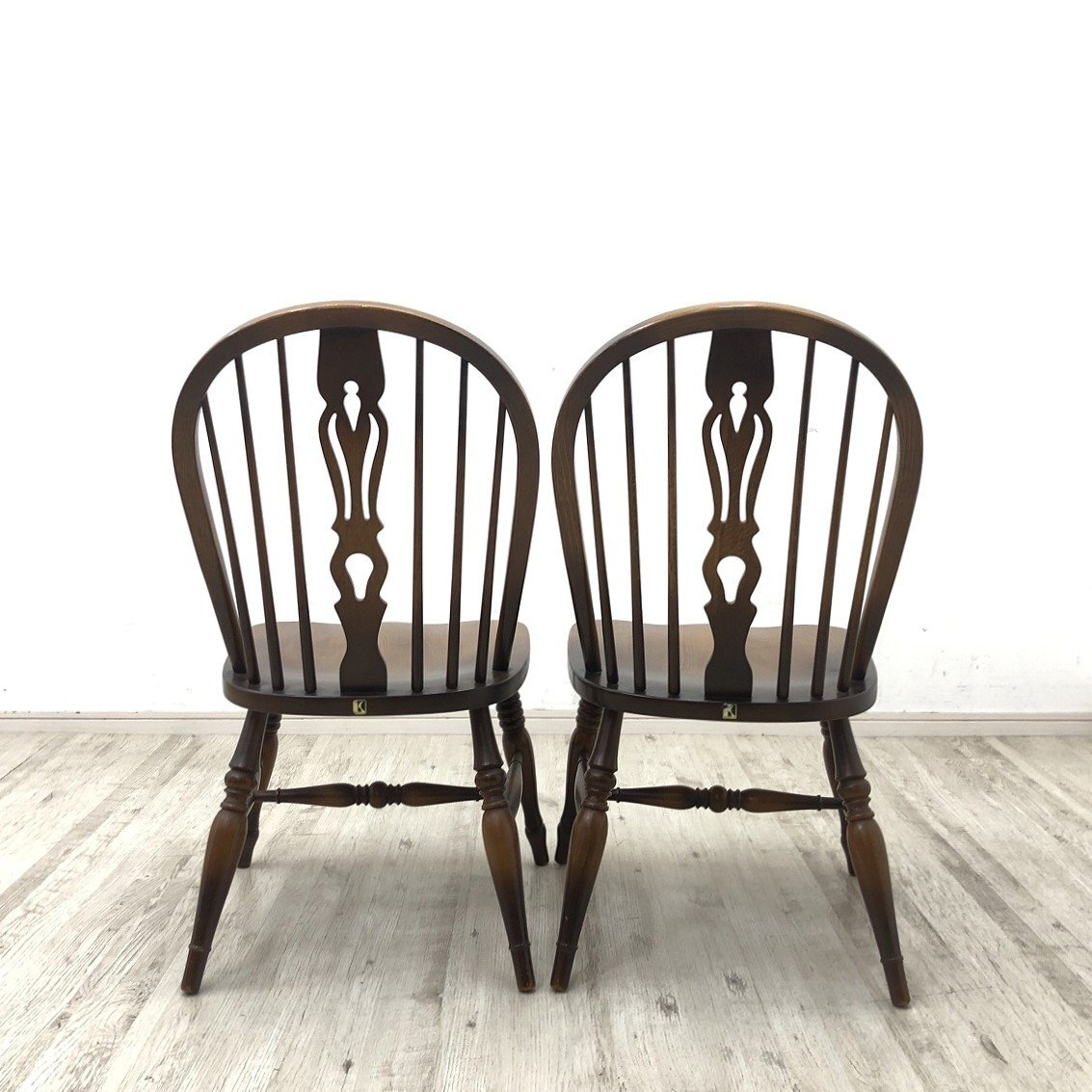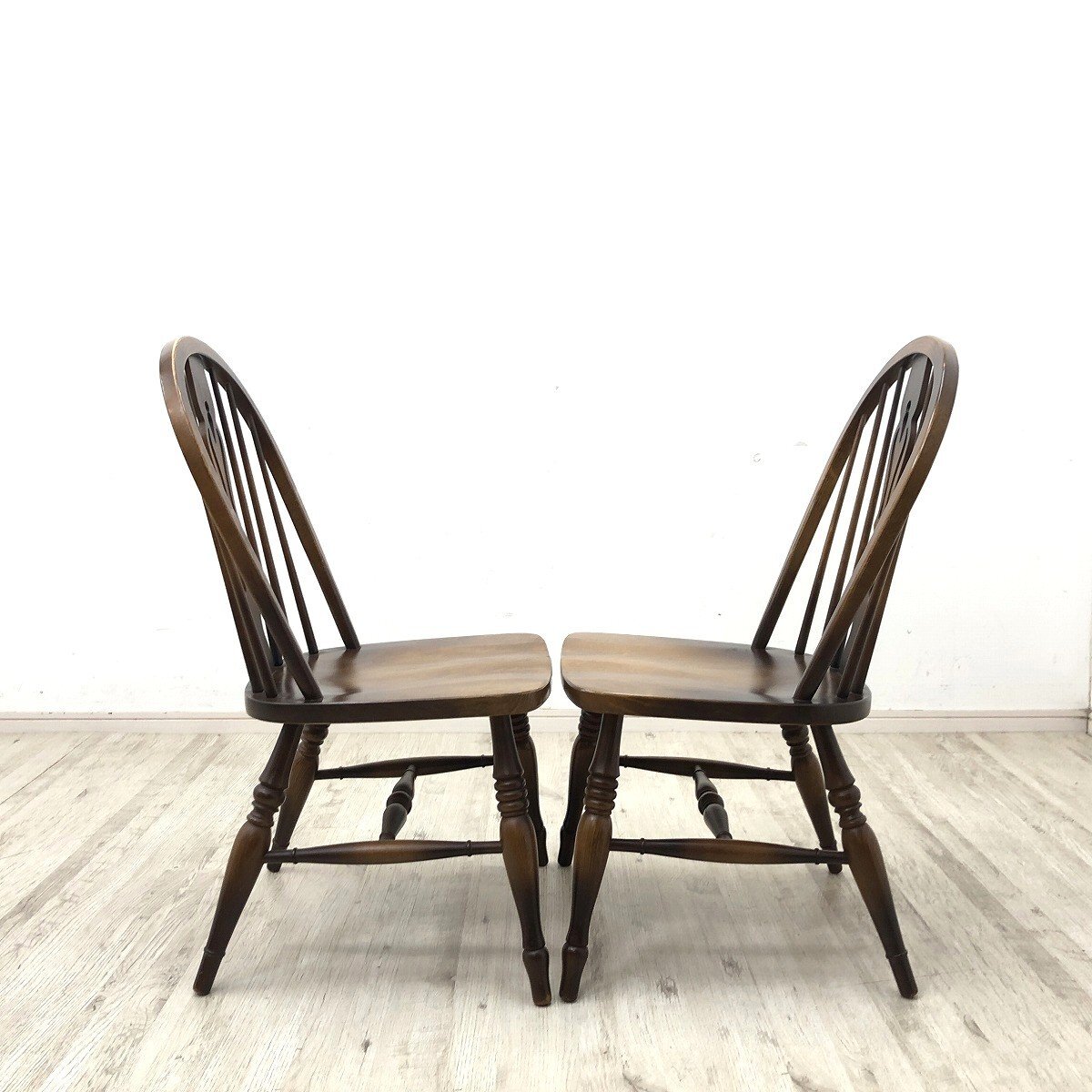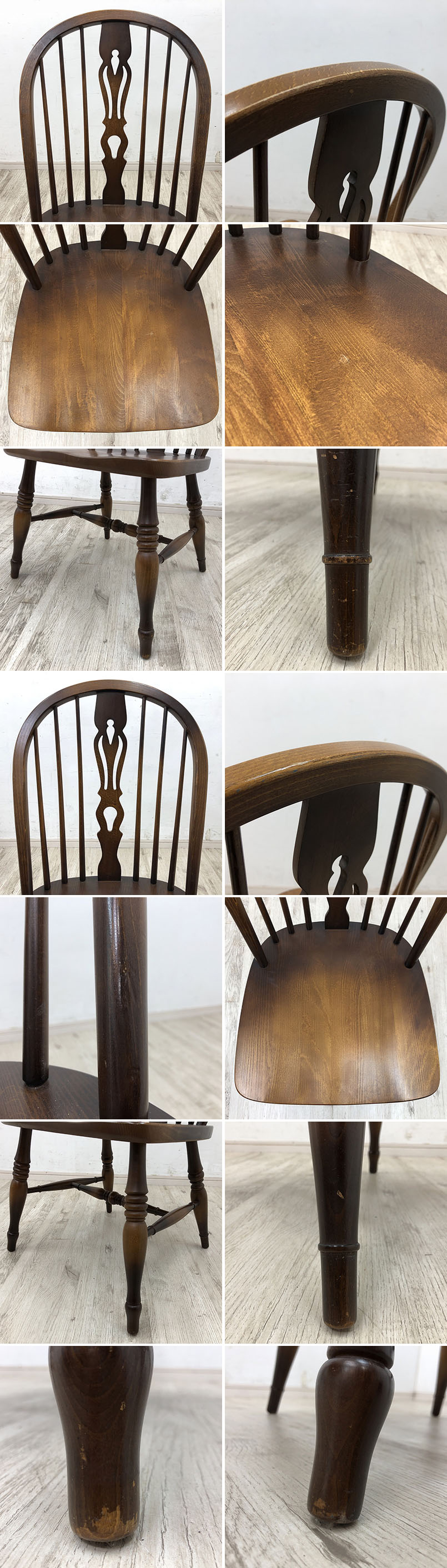 こちらはHIDA 飛騨産業 キツツキ 穂高 ウィンザーチェア フープバックチェア 2脚セットです。 中古品です。 1920年創業の飛騨高山にあります日本を代表する家具メーカー、飛騨産業のウィンザーチェアです。 ウィンザーチェアはもともと英国で17世紀後半頃から製作されはじめ、その伝統的な技術やデザインが 世代を超えて受け継がれてきた歴史のある椅子です。 挽もの細工の脚は、華美になりすぎず生活に溶け込む優しい印象ながら、 とても丈夫でキッチンのダイニングチェアやワークチェアとして使うのにぴったり。 背棒の中心には上品な透かし彫りが施されており、クラシカルで優美な雰囲気を高めています。 座面には座刳り(ザグリ)と呼ばれる彫りが施されており、板座でありながらお尻の当たりが柔らかく、 長時間座っても疲れにくい造りになっています。 【コンディションについて】 使用感やキズ、スレがあります。 詳細につきましては下記画像も合わせてご参照ください。 ![]() 同シリーズチェアを出品中です。(2025.11.6時点) 再良市場の他のお品物はこちらから!