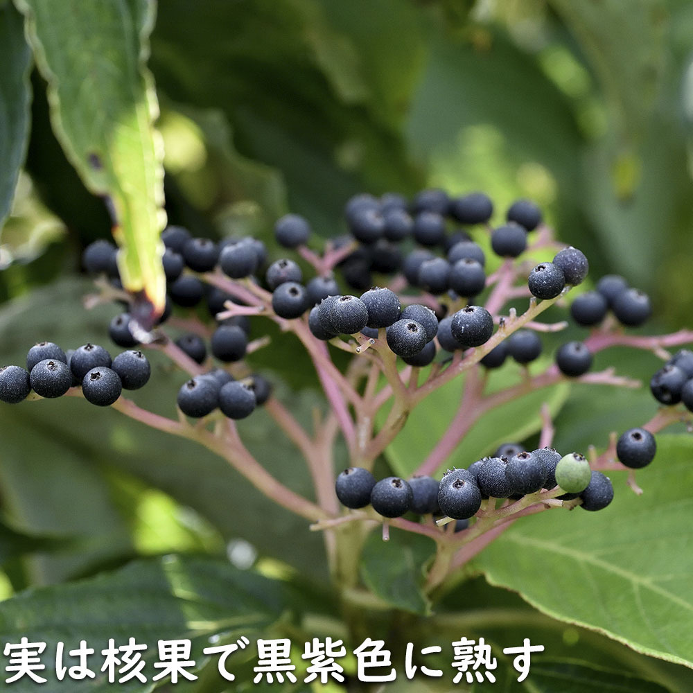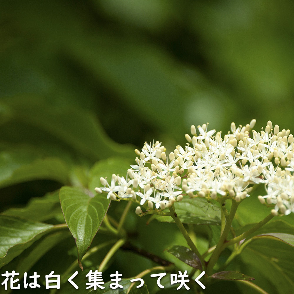 ミズキは落葉高木です。日本全土に自生しています。樹高は20m程度になります。公園樹としてよく利用されています。初夏に白い花を無数につけます。実は球形で黒紫色をしています。材木は軟らかく下駄などに利用されます。名前は春先に多く水を吸い上げることからきています。
