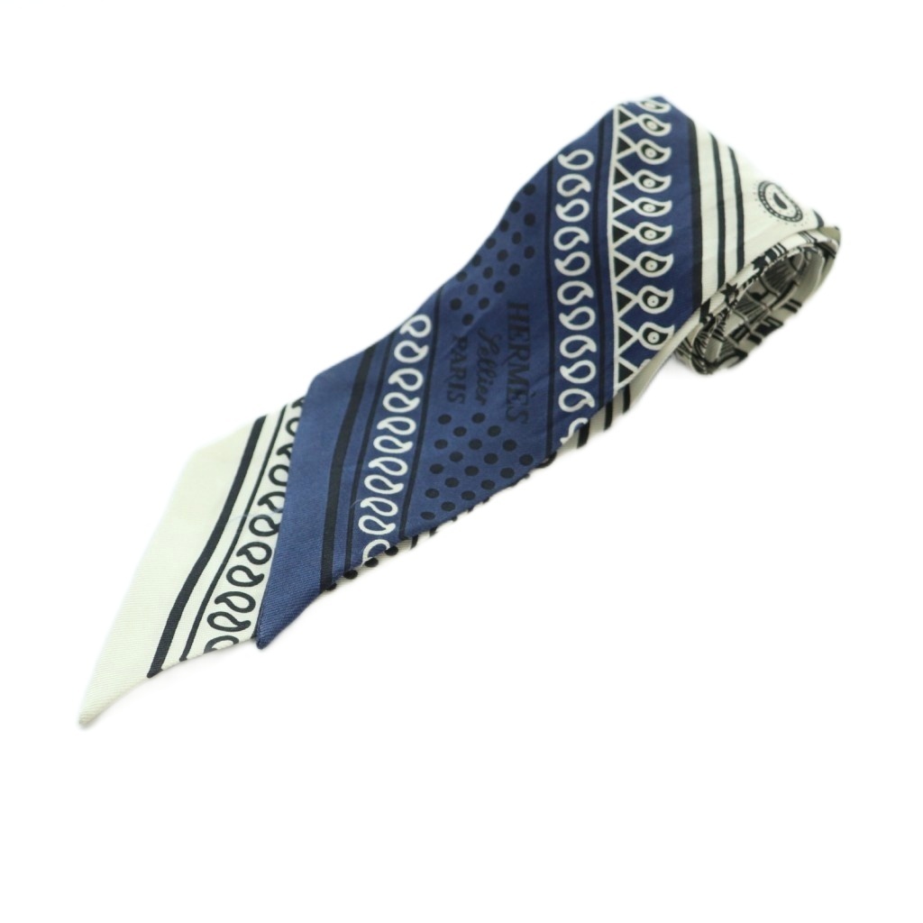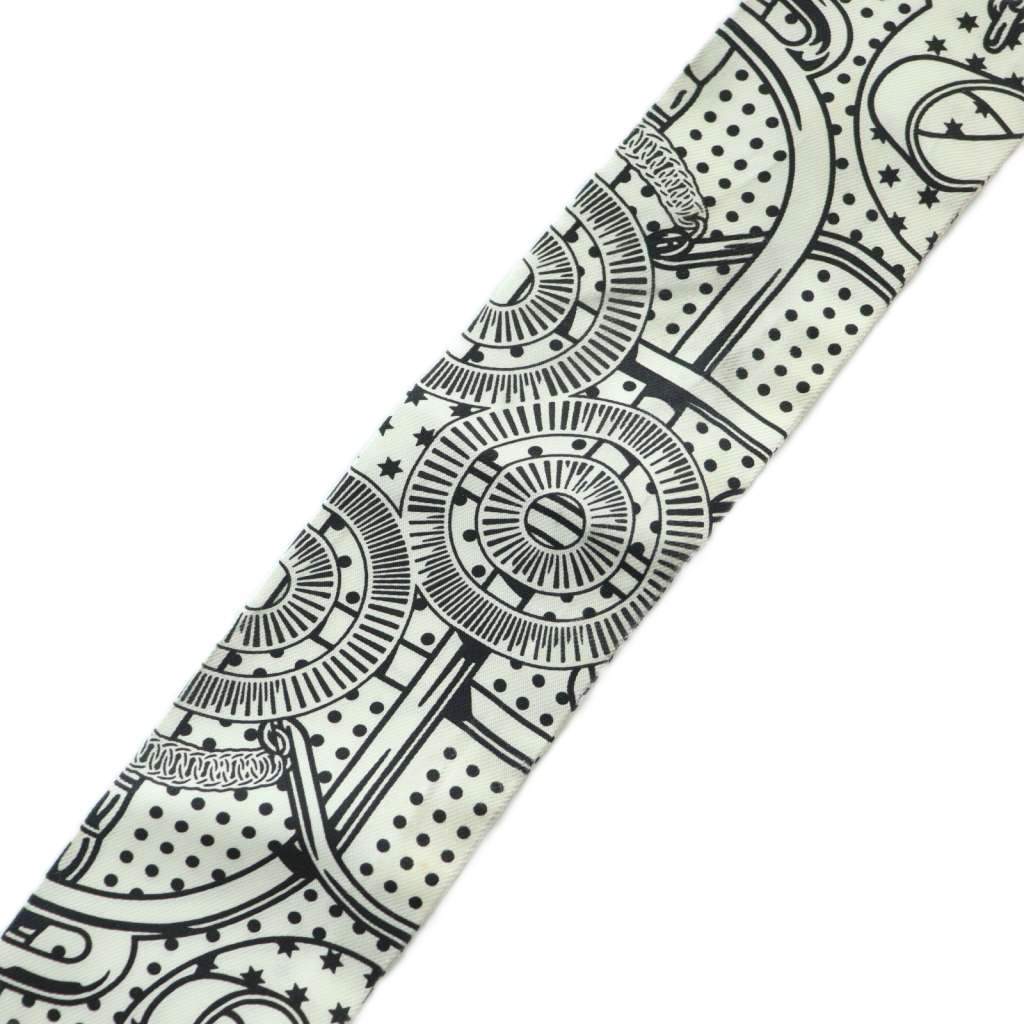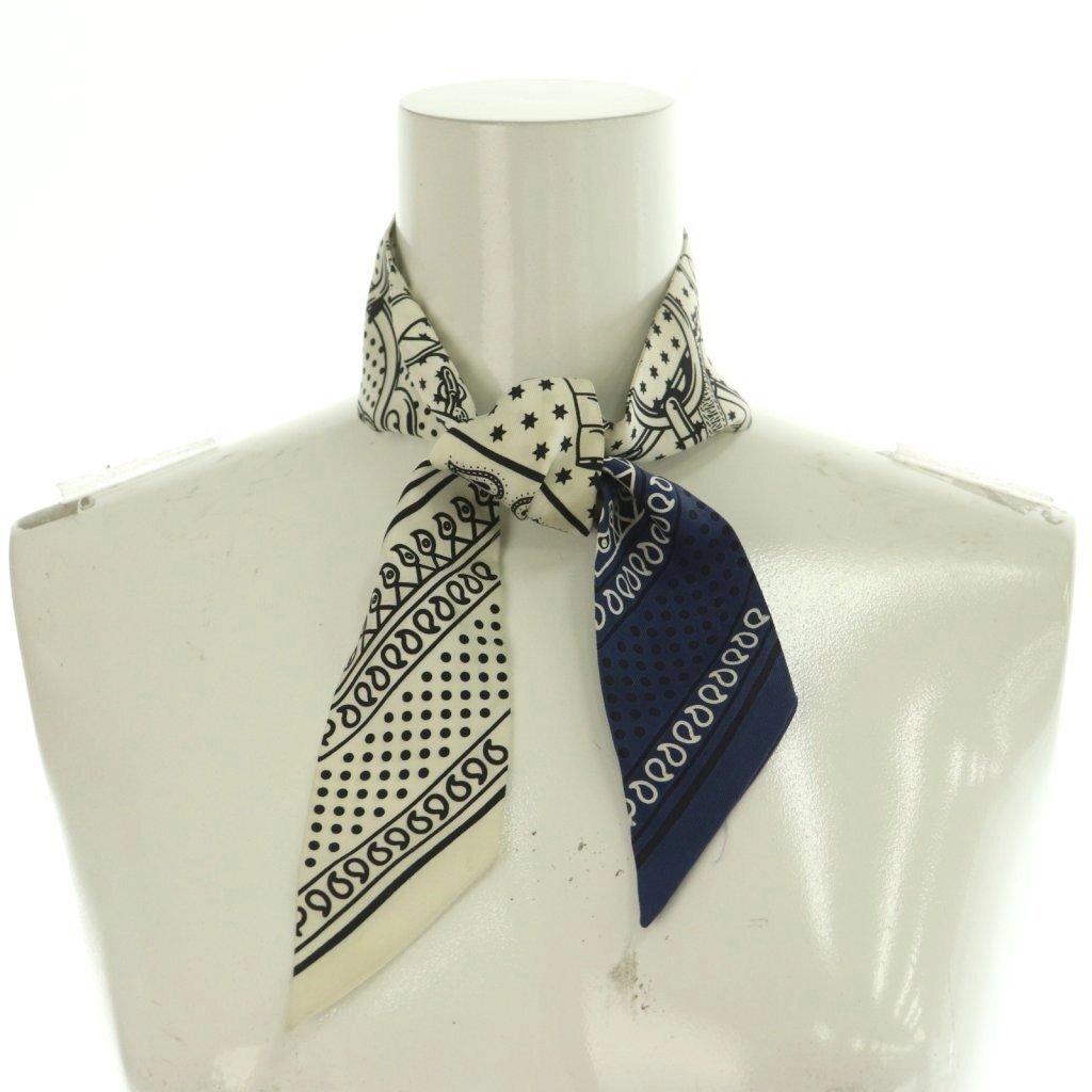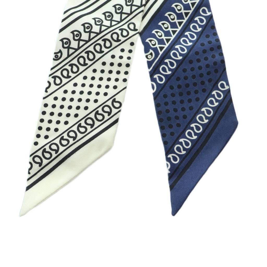 エルメス HERMES Eperon dOr Bandana ツイリー スカーフ シルク バンダナ柄 白 ホワイト 黒 ブラック 青 ブルー /MI ■OS レディース