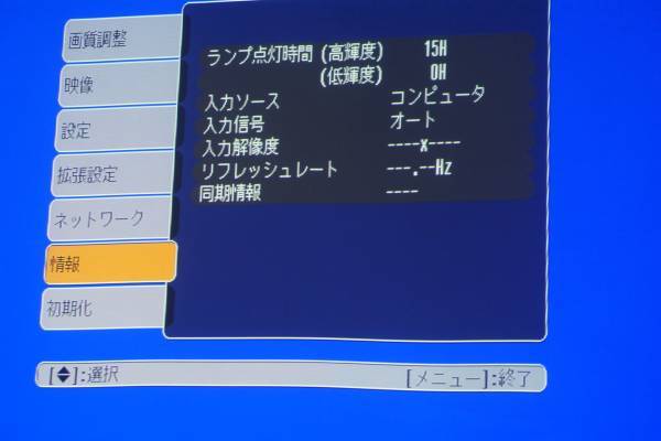 ランプ使用時間(メニューから確認) 高輝度:15