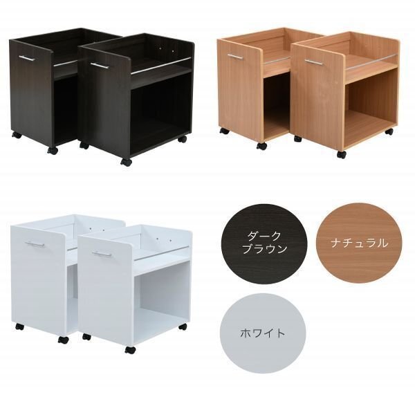 | 【カラー】 ダークブラウン、ナチュラル、ホワイト 【サイズ】 <外寸> 幅38.5×奥行58.5×高さ65.5cm/個 <内寸> オープン部:幅52×奥行36.5×高さ39cm 上部オープン部:幅52×奥行34×高さ16.5cm 【材質】 本体:プリント紙化粧合板 【耐荷重】 固定棚:(約)10kg以下 【生産国】 インドネシア 【梱包】 サイズ:64.5×45×20.5cm、重量:18.5kg 【その他】 ・キャスター4個(うちストッパー付き2個)/個 ・背面化粧有り 【組み立て品】 お客様による組み立てが必要です。 |
