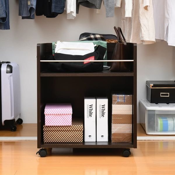 | キャスター付きの便利なクローゼットラック2個組。 取っ手はどちらにも取り付け可能なので、収納箇所の向きは左右入れ替えできます。 幅が広いので収納場所に困る大きな日用品のストックにも最適。 クローゼット内のスペースを有効活用するのでお部屋をすっきり片付けられます。 |