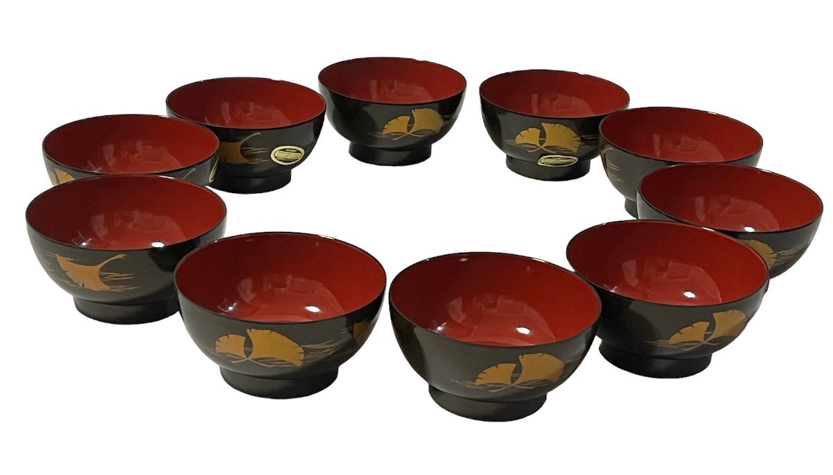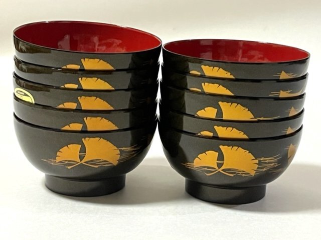 | ★未使用★ 梨子地 四寸汁椀 SK-HS 梨子地漆 漆器 お椀 汁椀 食器 和食器 銀杏 10客セット 来客用 おもてなし 金粉 高級 |