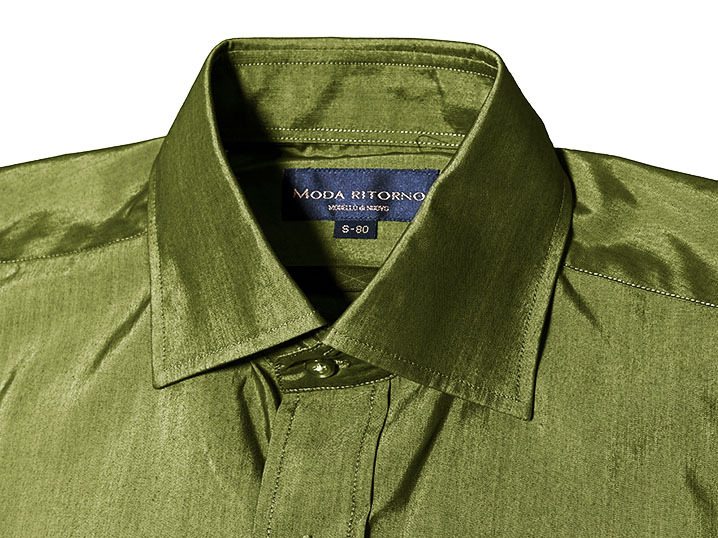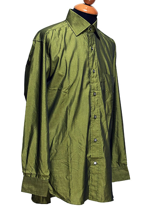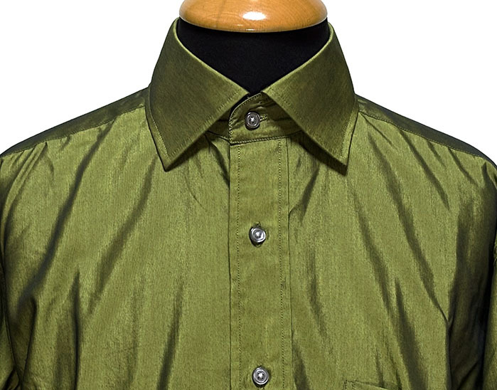 落ち着いた自然な色合いで、光沢感が洗練された印象のシャツです。