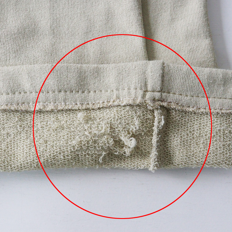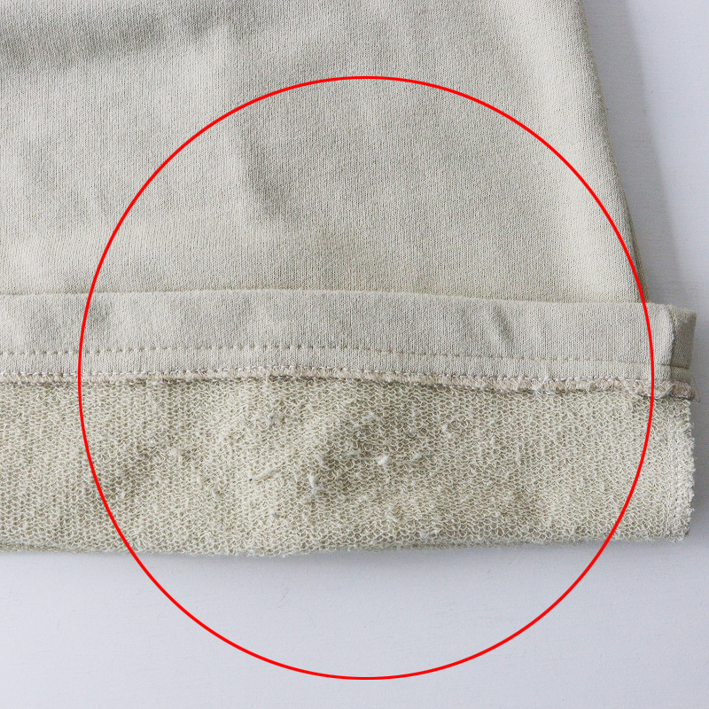 バック右裾付近に小さな汚れが見受けられます。裾付近の裏毛にほつれがございます。