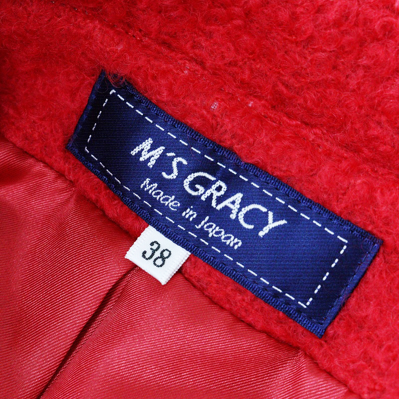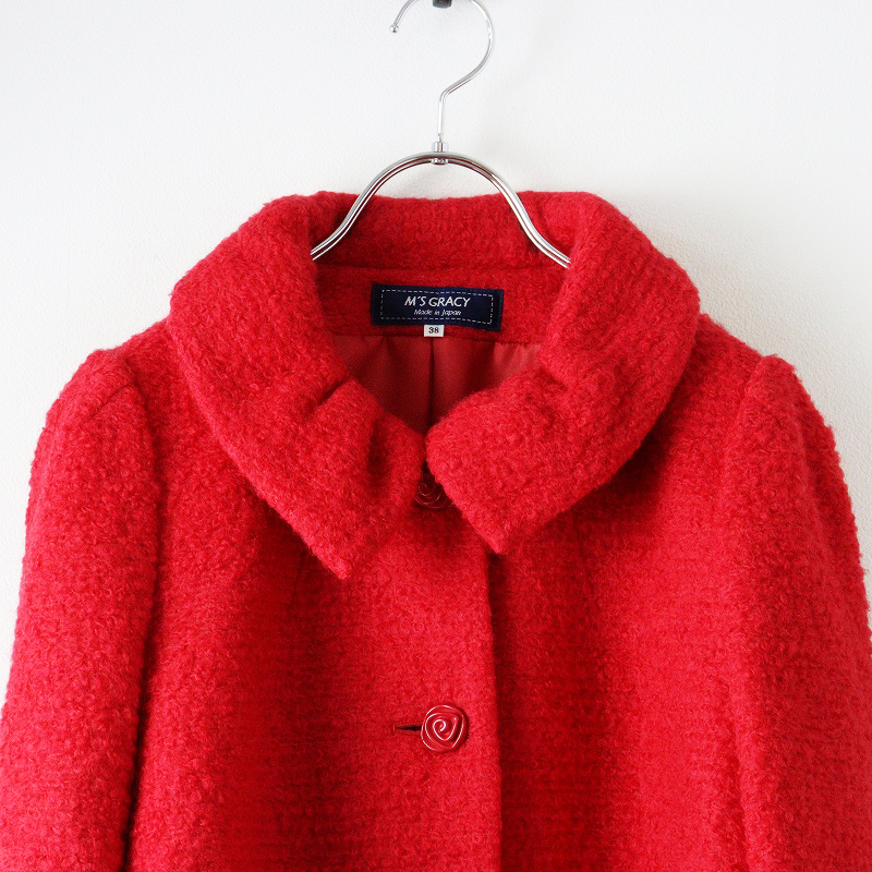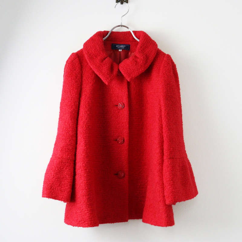 美品 定価5.3万 2025AW エムズグレイシー M'S GRACY リッチスリーブショートコート 38\レッド ウール ジャケット【2400014687729】