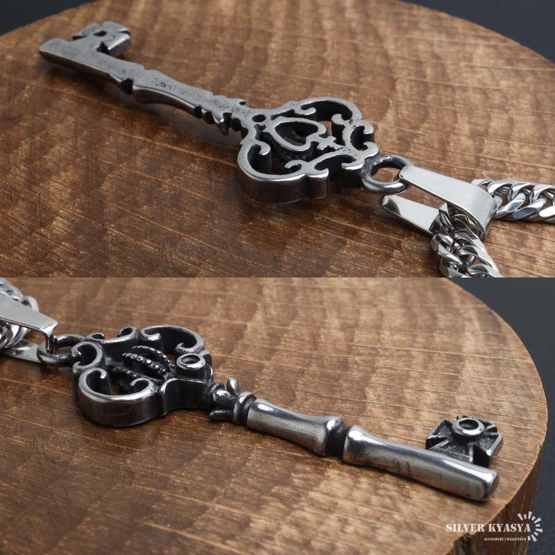 クラウンモチーフが繊細にデザインされたキーネックレス。所々に施された燻しが立体的なフォルムを引き立てます。丁度良いサイズ感でシンプルなコーデの主役アイテムに。