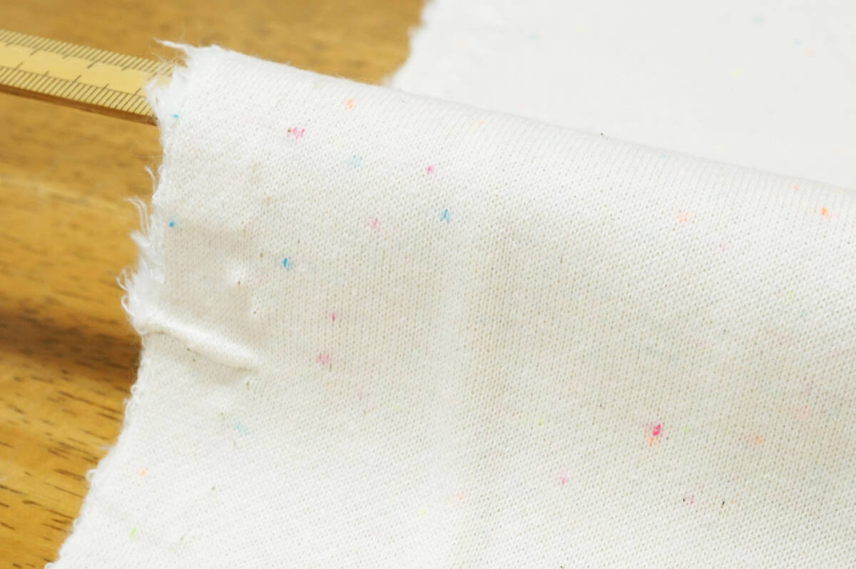 綿99% ポリエステル1%、厚さはやや中厚地で、巾方向に少し伸縮性があり、硬さの無い、柔らかめな風合いで、裏面はあったか起毛タイプでございます。