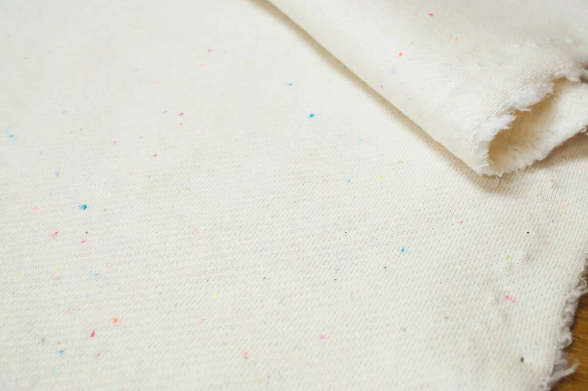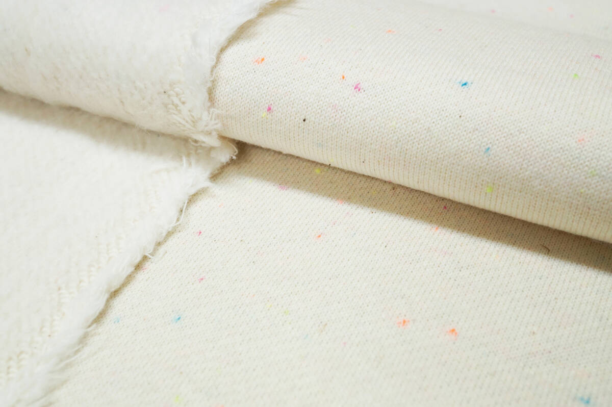 カラフルなカラーネップがオシャレな裏起毛スウェットニットの出品でございます。