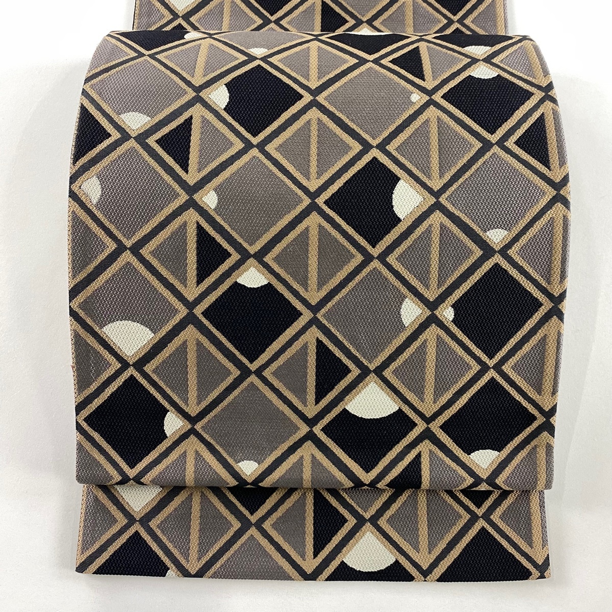 | 袋帯 美品 名品 幾何学模様 黒 六通 正絹 【中古】 |