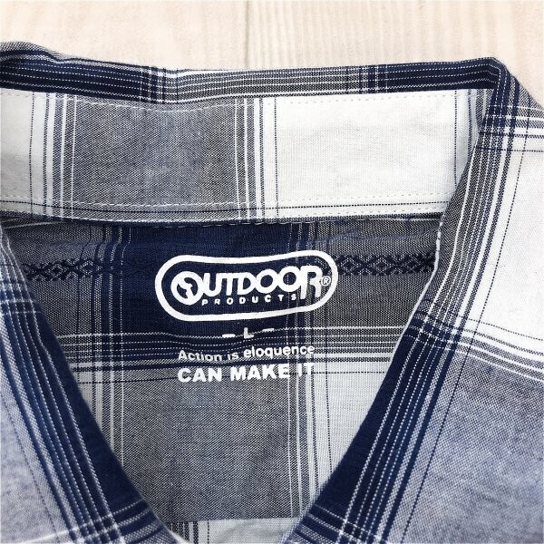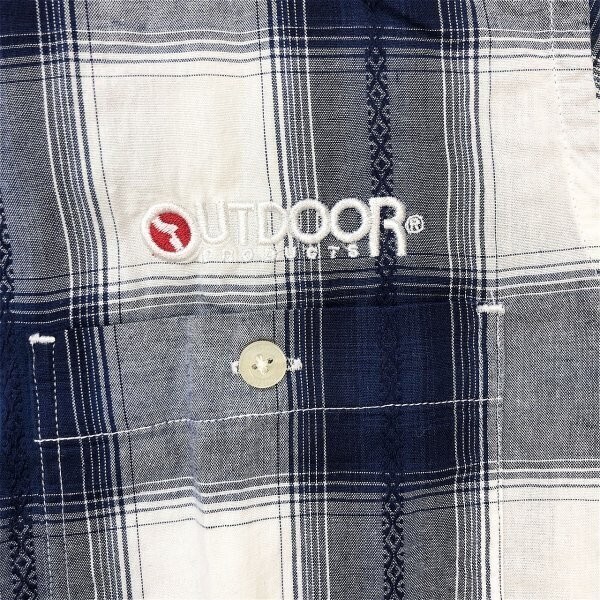OUTDOOR PRODUCTS アウトドアプロダクツ メンズ ロゴ刺繍 ダブルポケット チェック 半袖シャツ L 白紺 です。