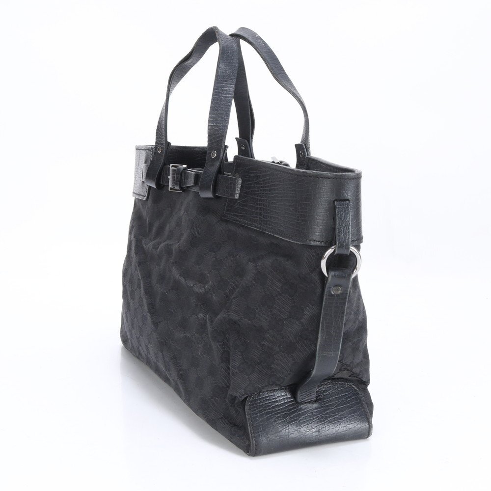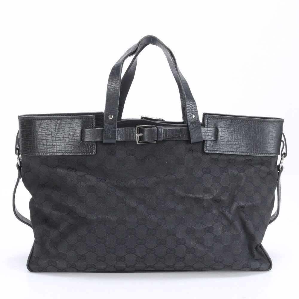 1円■グッチ■GG キャンバス レザー ベルト トート バッグ ショルダー ビジネス 通勤 書類鞄 ブラック A4 106251 レディース EUE BW3-2