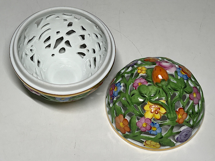ヘレンドHEREND ファンタジー ボンボニエール ◆商品詳細 寸法(約):9.5x9x7.5(高×幅×口径cm) ※寸法に若干の誤差が生じる場合もございます。 少し汚れがありますので、 ご承知の上入札お願いします。 状態等画像にてご確認の上ご入札よろしくお願いいたします。 ◆発送先等のご連絡とお支払いについて ※発送先等のご連絡 落札時から48時間以内にお願い致します。 ※お支払 かんたん決済の期限内にお願い致します。 複数点落札時にまとめて取引の場合(72時間内)に、 まとめて取引の取引手順(落札者方の操作)を参考にお願い致します。 梱包したサイズを測って、地方によって送料を決めますので、よろしくお願いします。 ◆掲載画像について ※画像は現物を撮影しておりますが、照度、遮光、モニターによっては実物と 色目が異なって見えることがありますのでご注意ください。掲載画像では確認 できない傷や汚れがある可能性もございます、あくまで 中古品であるということをご承知の上、御入札をお願い致します。 ◆補償について 商品到着後はすぐに状態の確認をお願い致します。 商品の破損等がございまし たら、箱や梱包材など全てそのままの状態で保存し、お早めにご連絡ください。 (到着日から一週間以上経過、梱包材の廃棄済み等の場合、保証は致しかねます のでご注意ください。) ◆返品について 思っていたイメージと違う、などのお客様主観による返品はお受けできません ので、予めご了承ください。ノークレーム、ノーリターンでお願いします。届 いた商品が商品説明と著しく異なる場合(寸法、キズ記載ミスなど)のみ承り ます。早めにご連絡ください。 ◆注意事項 当方の希望価格と隔たりがある場合は、終了前にやむなく取下げさせて頂く場 合がございます。 ※商品ご落札翌日から4日間以内にご連絡が取れない場合は、入札取消の処置を 取らさせていただく場合がございます。 ※評価の悪い方は取り消す場合がございます。 ※原則として当方の不備以外のキャンセル・返品・返金は受け付けておりません。 以上の点を予めご了承頂いた上で、入札・落札お願い致します。 ◆発送方法 ▼ゆうパック(補償あり/追跡あり) 梱包後のサイズ:~約60cm ※送料全国一律880円 (但し北海道、沖縄、離島は+500円いただきます。) 発送元は静岡県となります。 ( 商品の組み合わせによっては同梱をお断りさせていただく場合があります。) ※大型商品について 郵便局の規定を超える商品の場合は、佐川急便またはヤマトでの発送となります。 |