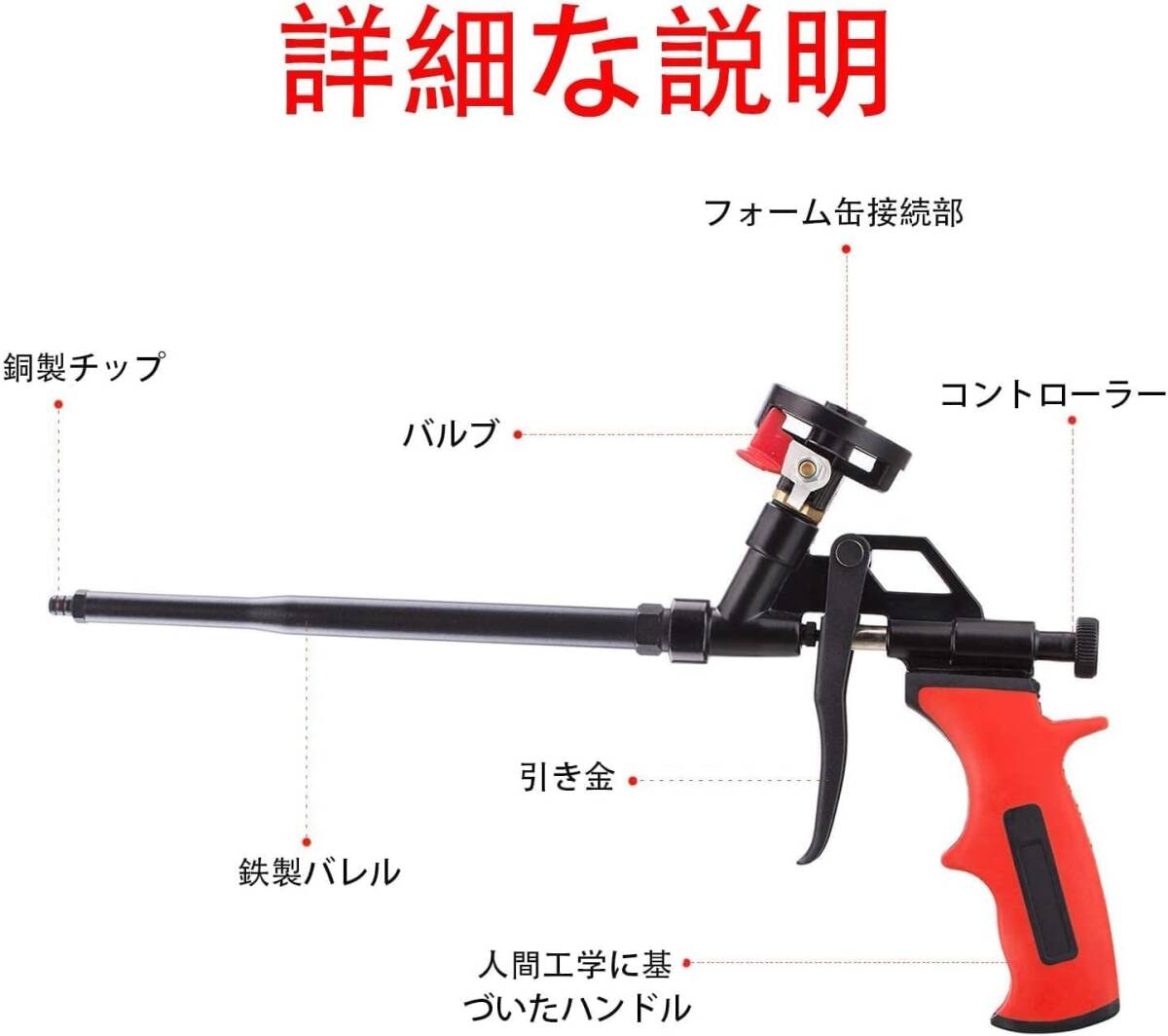 発泡ガン 発泡ウレタンガン フォームガン 高耐久性、錆止め加工済みPU拡張 クリーナー不要発泡ガン コーキング・充填・封止用