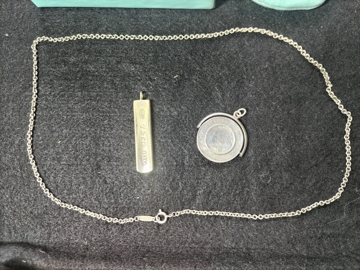 ティファニー TIFFANY SV925 ネックレス 激レア廃盤モデルHEADS TAILコイン型ペンダントとシンプルなナローバーです、その日の気分で付け替えて楽しめます。送料は0円と表示されますが、クロネコの着払いですのでご承知おきください。現物優先ノークレームノーリターンでお願い申し上げます。