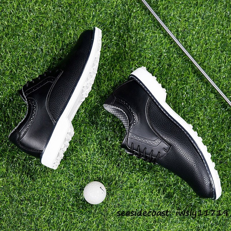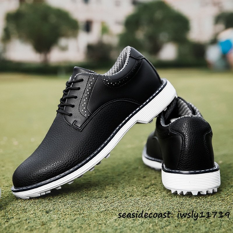 超希少 メンズ ゴルフシューズ イギリス風 通気性 高級品 スニーカー スパイクレスシューズ 超軽量 フィット感 防滑防水 ブラック 24.5cm