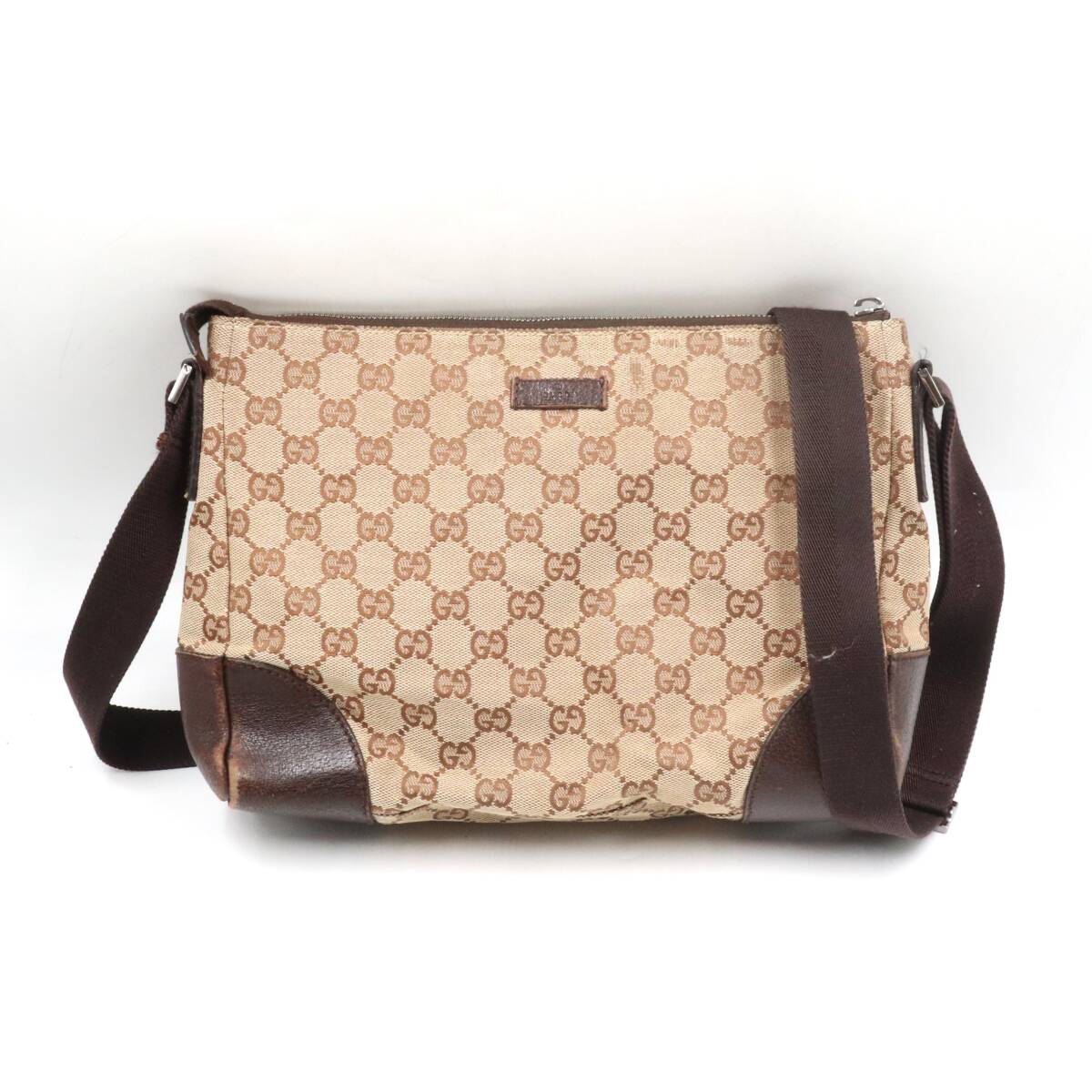 ★GUCCI グッチ 114273 GG柄GGキャンバス×レザー クロスボディ ショルダーバッグ 斜め掛けかばん ブラウン系