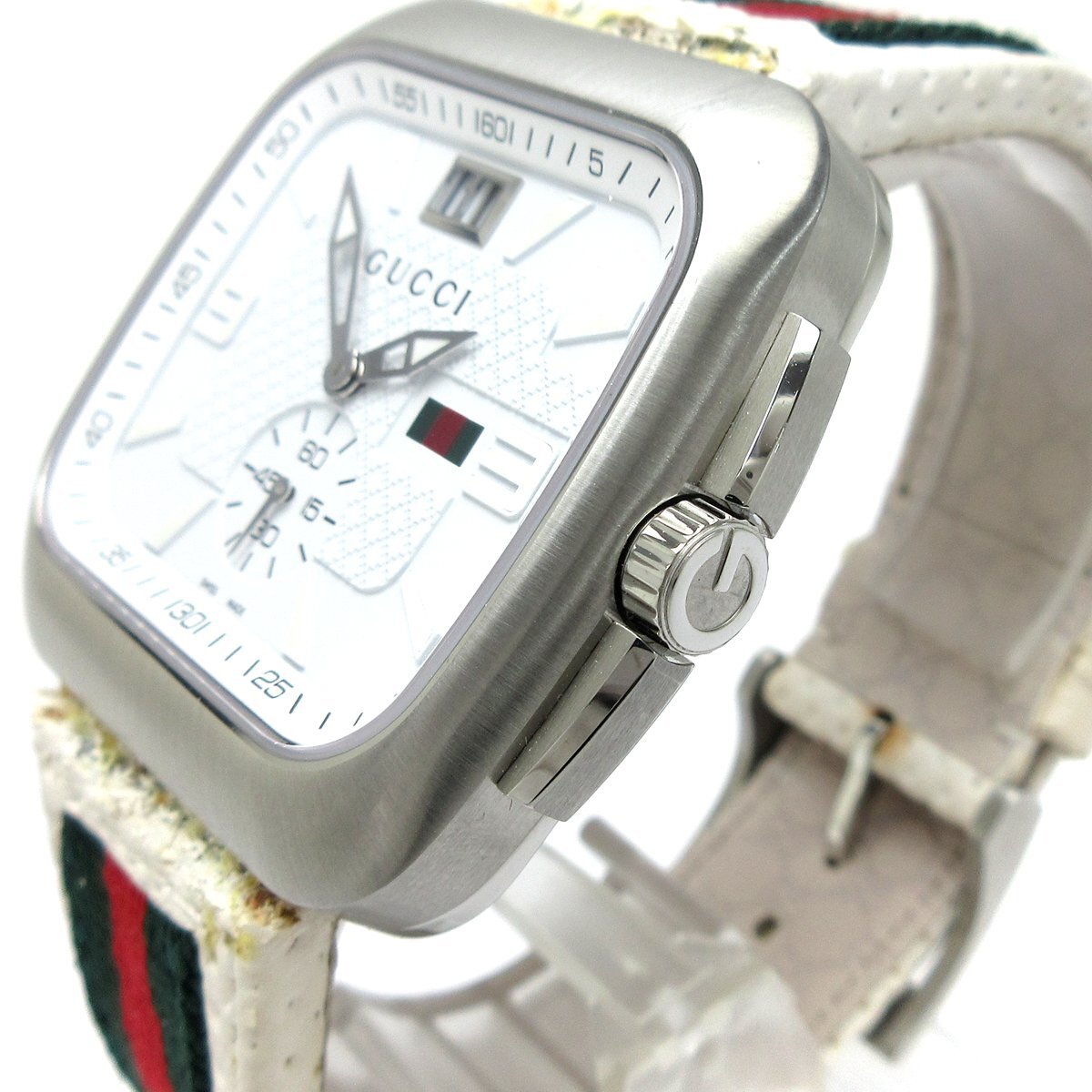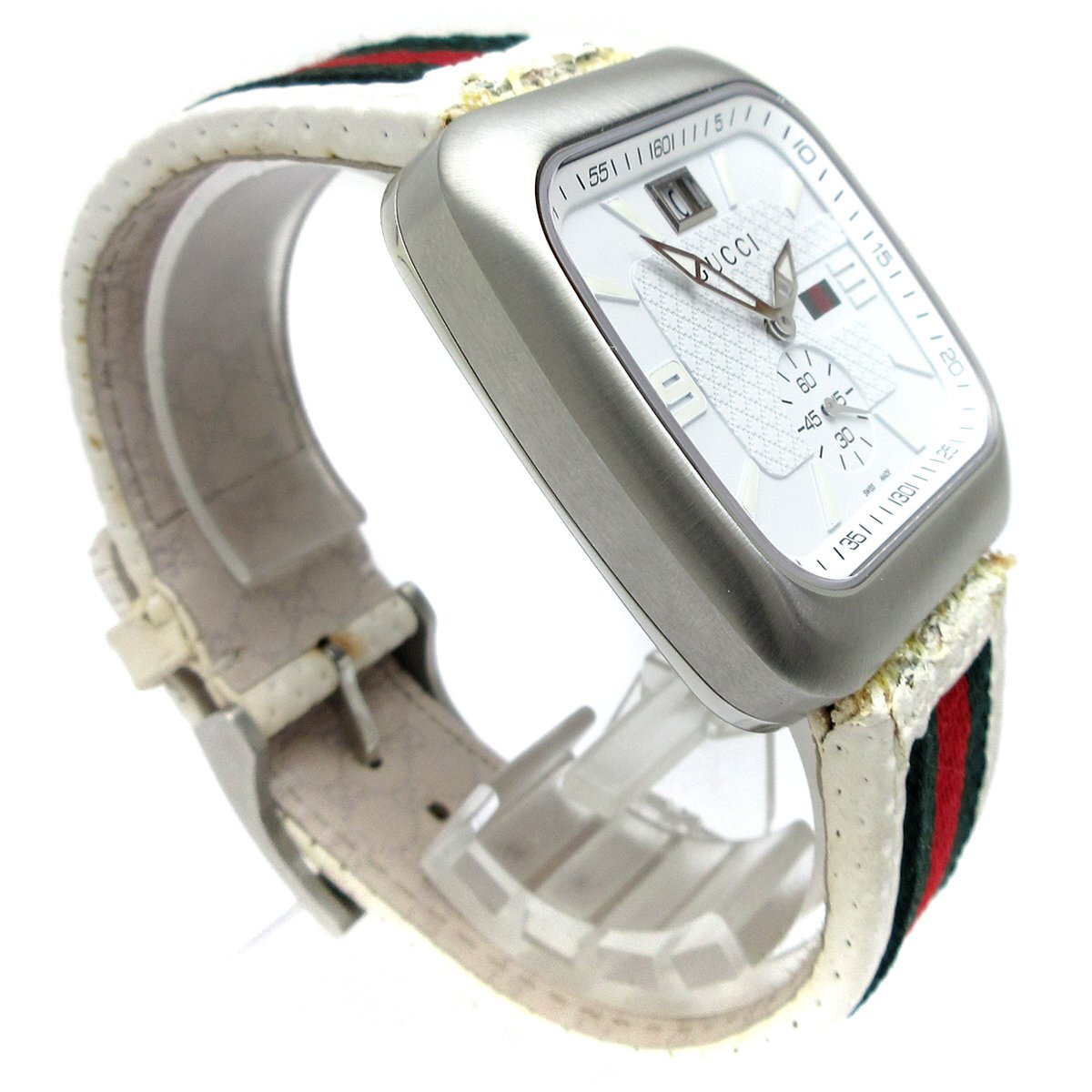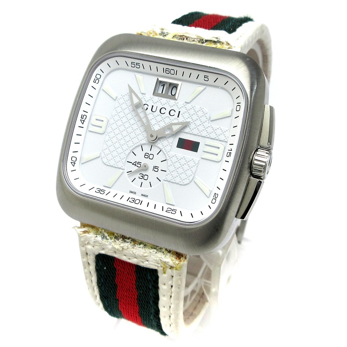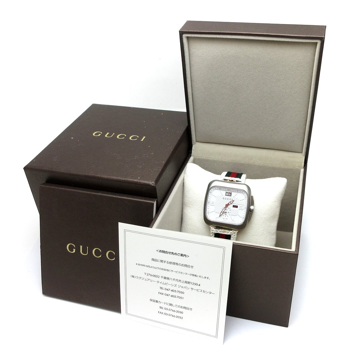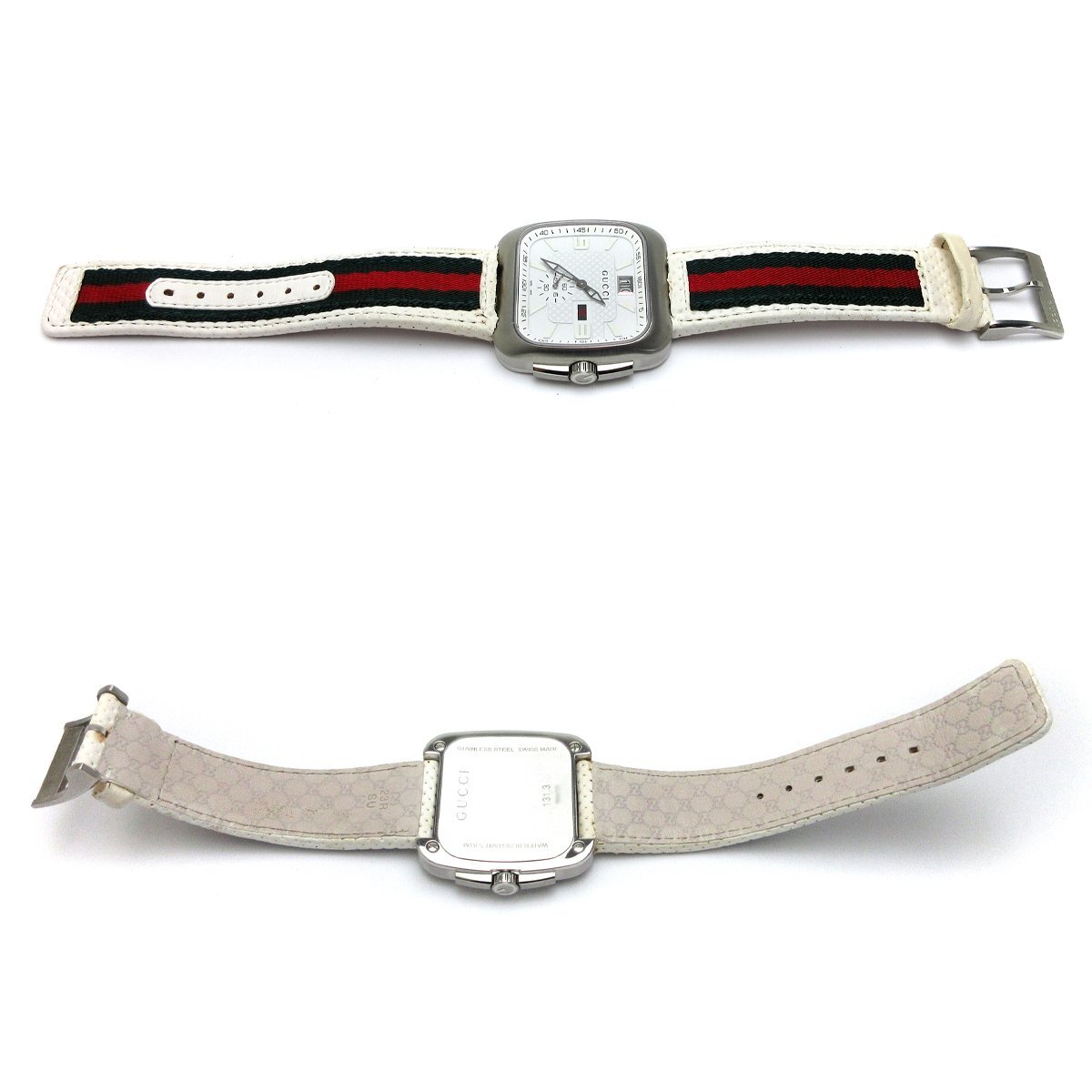 ■イタリアの高級ファッションブランド『グッチ(GUCCI)』。 ■『クーペ』コレクション。 ■グッチカラー(GRG)のベルトが目を惹くおしゃれなモデル。 ■爽やかなホワイトダイアル、大きめのデイトがオシャレです。 ■日常使いから特別な場面まで幅広く使えるアイテムです。 ◎カレンダー。 ◎日常生活防水。 ---【商品状態】--- ☆外装、全体的にキレイです。微細なキズはご了承ください。 ☆バンド、根本部分に破れがあり、他に色ヤケなどもあります。バンドループにも傷みあり、交換がおすすめです。 ☆ランクはケース【7~8】、ベルト【3】、総合【6】です。 ※商品画像はお客様のモニター環境によっては色調が異なって見える場合がございますのでご了承ください。 |