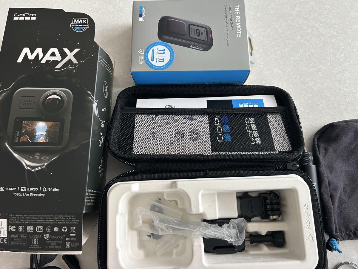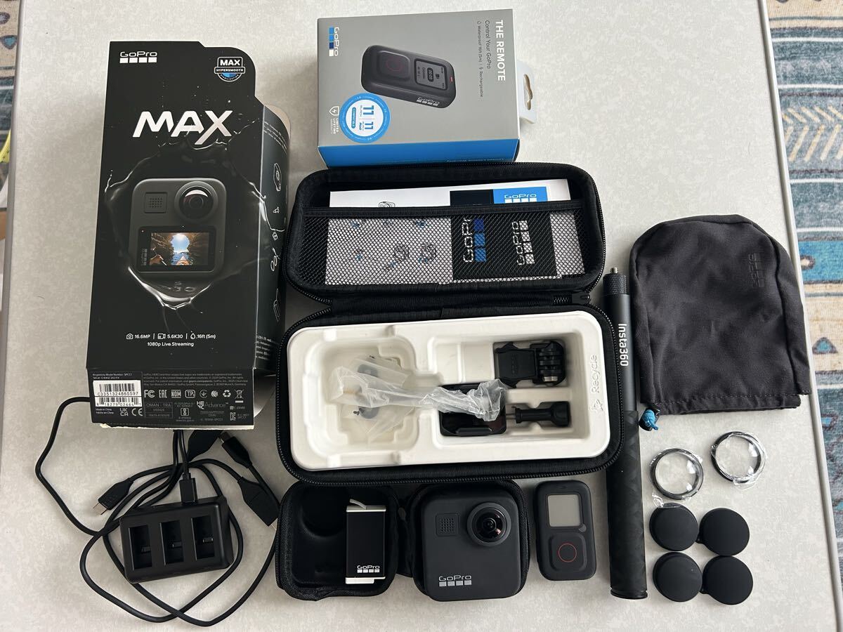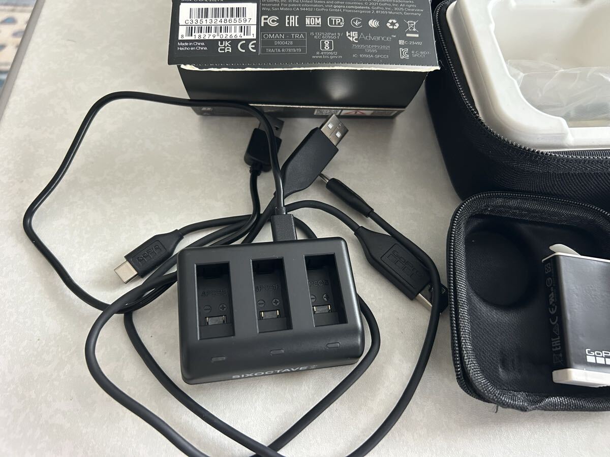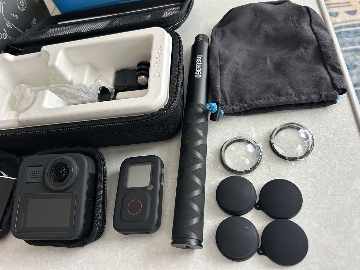 リモコン、自撮り棒、バッテリー充電器、バッテリーはエンデューロバッテリー1個、本体ケース、をお付けします。レンズカバーは未使用、もともとのケースも未使用、目立つ傷無く綺麗だと思います。必要なものが揃ってますのでお得だと思います。