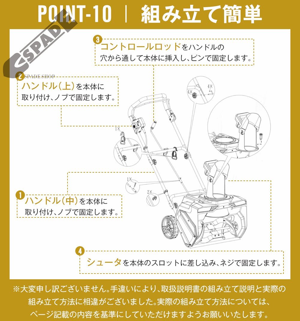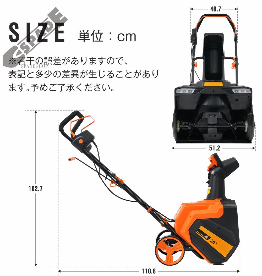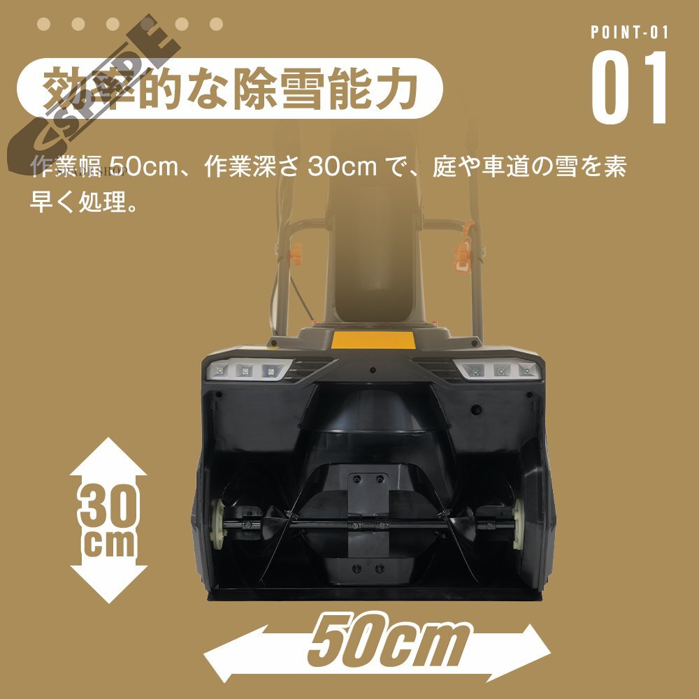 • 【効率的な除雪能力】作業幅50cm、作業深さ30cmで、庭や車道の雪を素早く処理。