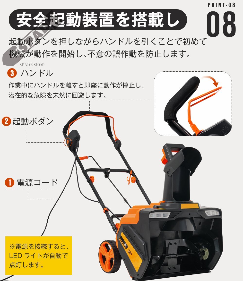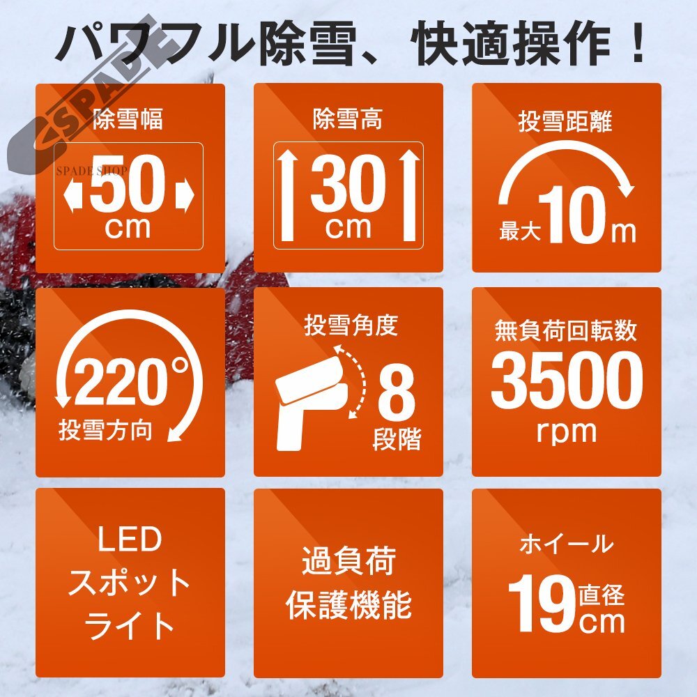 【国内発送】2024新作 除雪機 小型 LEDライト 家庭用 軽量 除雪幅50cm 除雪高30cm 10M電源ケーブル