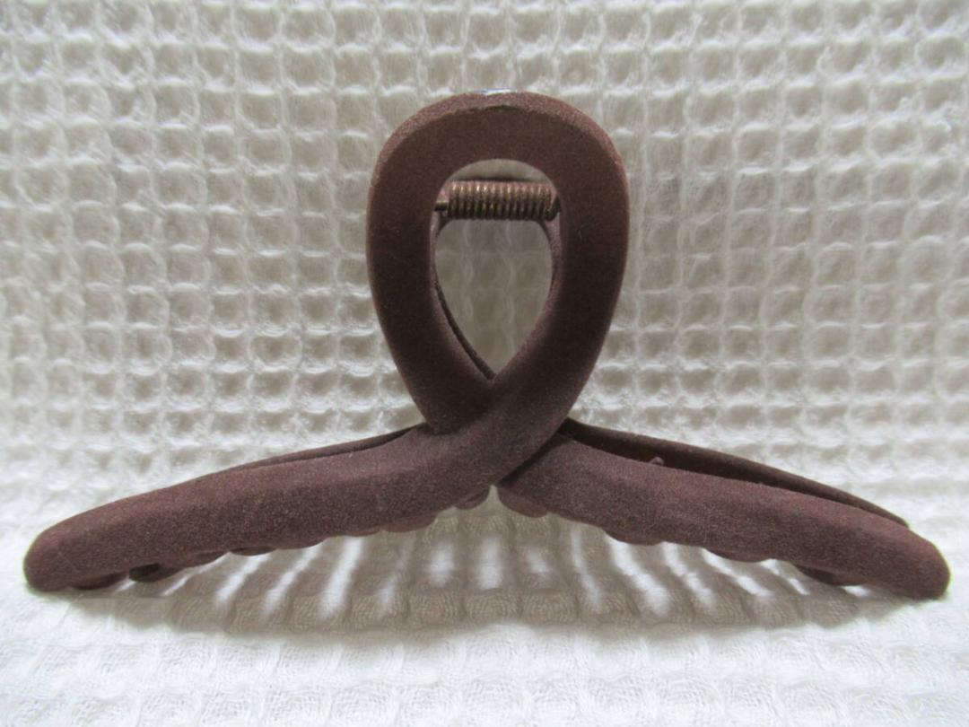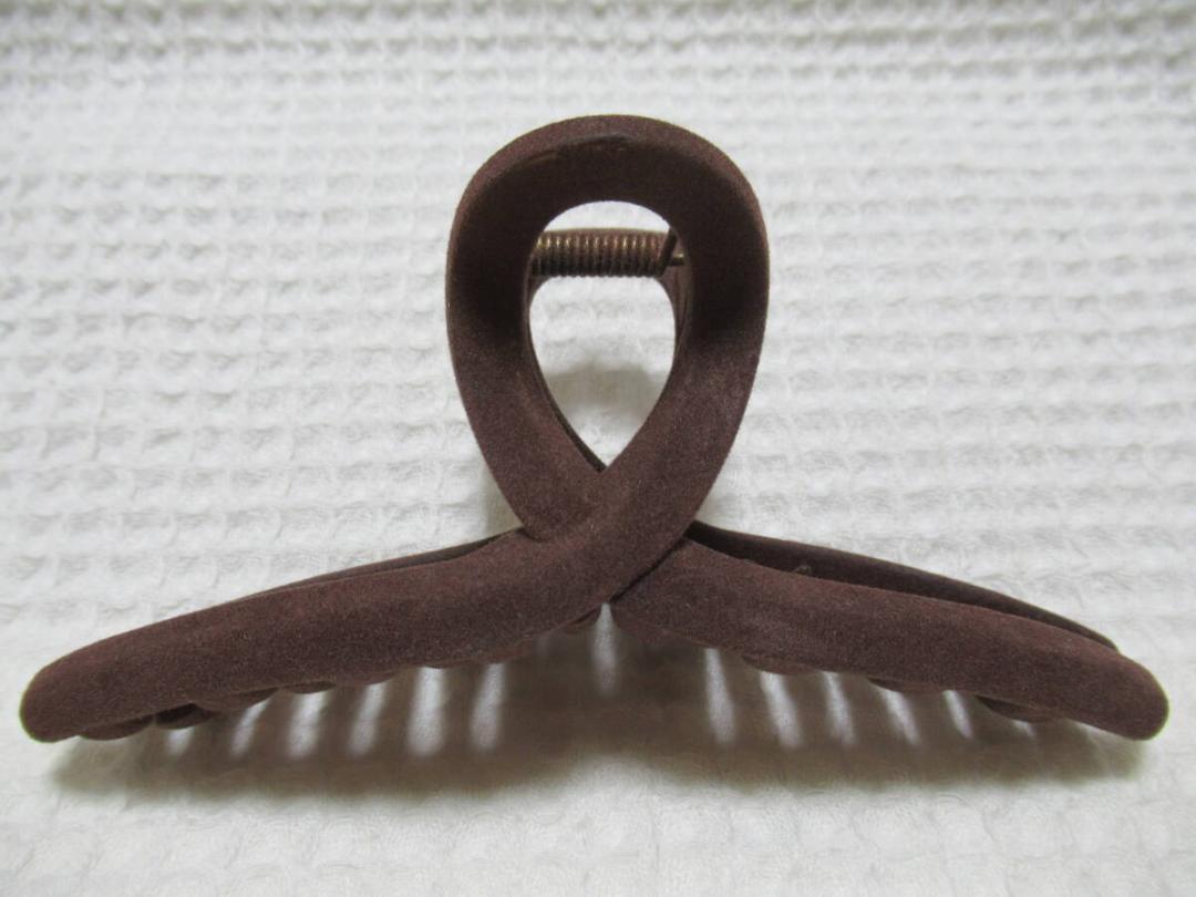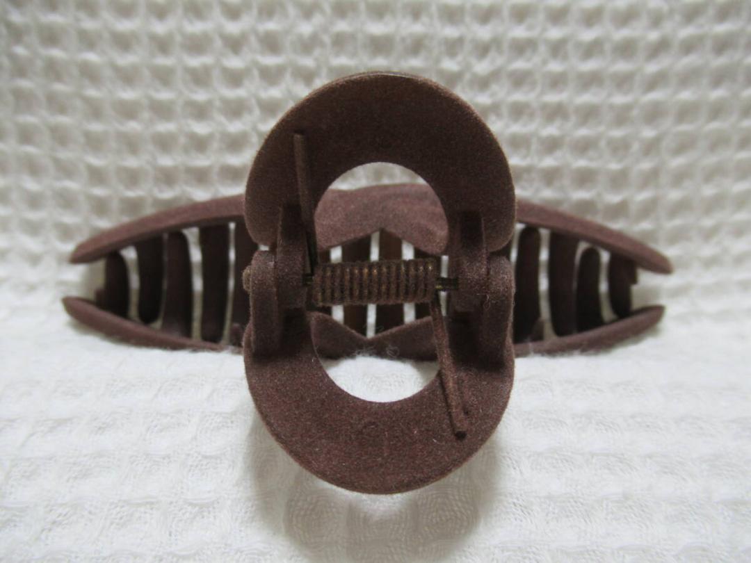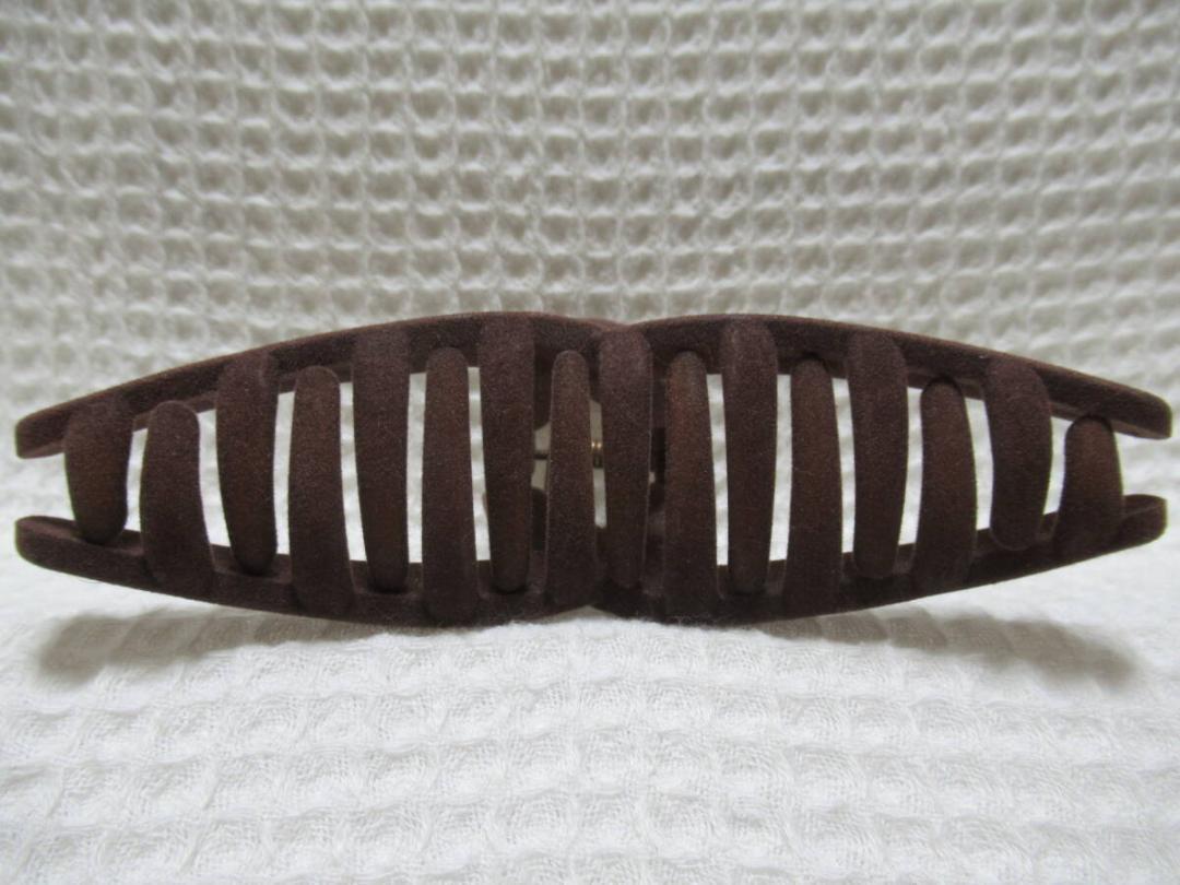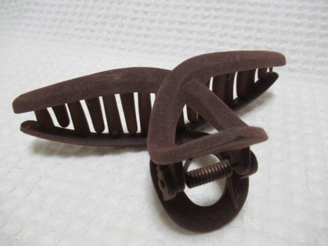フロッキー加工のループ型バンスクリップ ダークブラウン系 少々難アリ