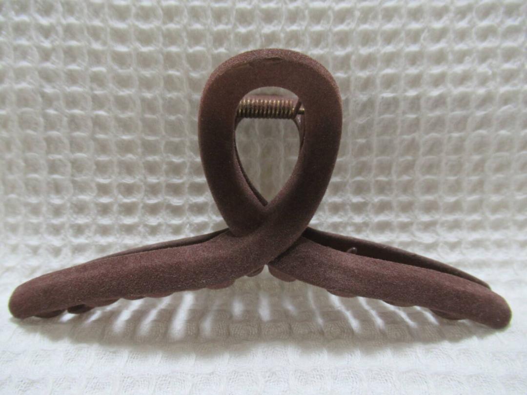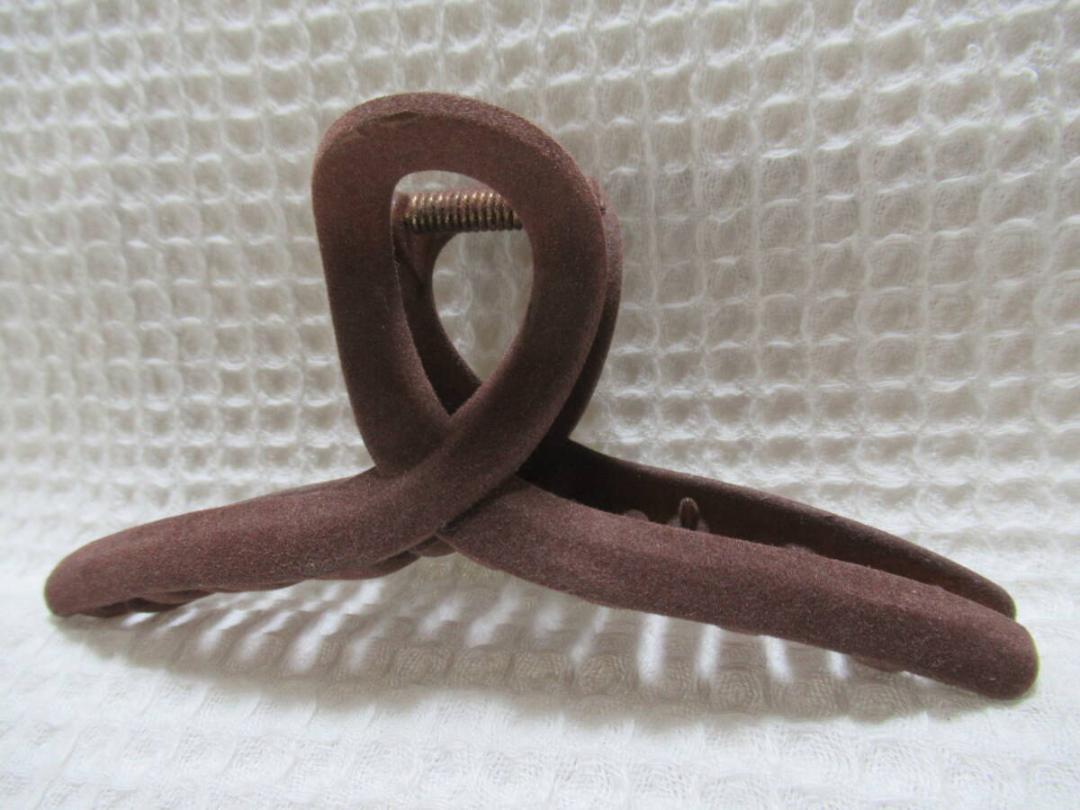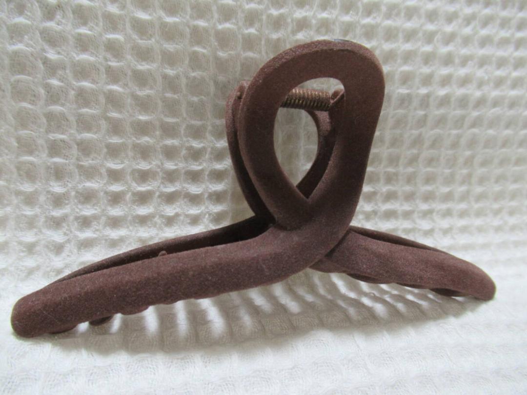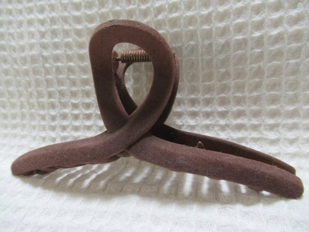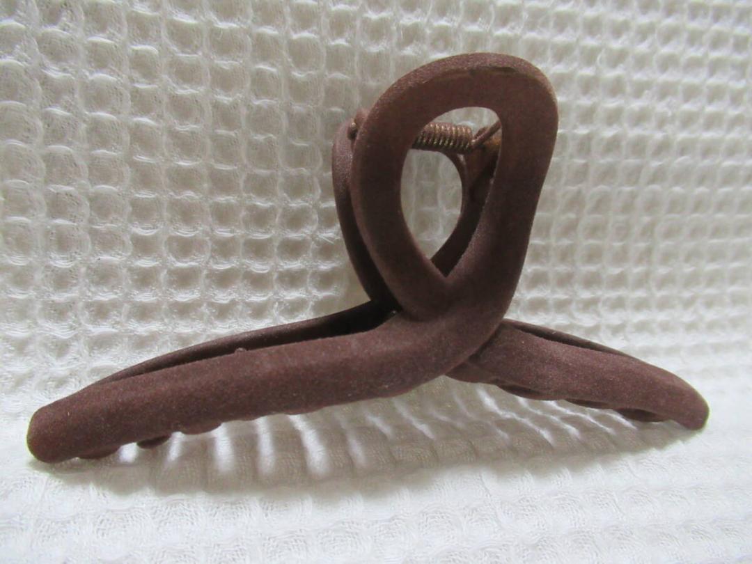 フロッキー加工のループ型バンスクリップ ダークブラウン系 少々難アリ