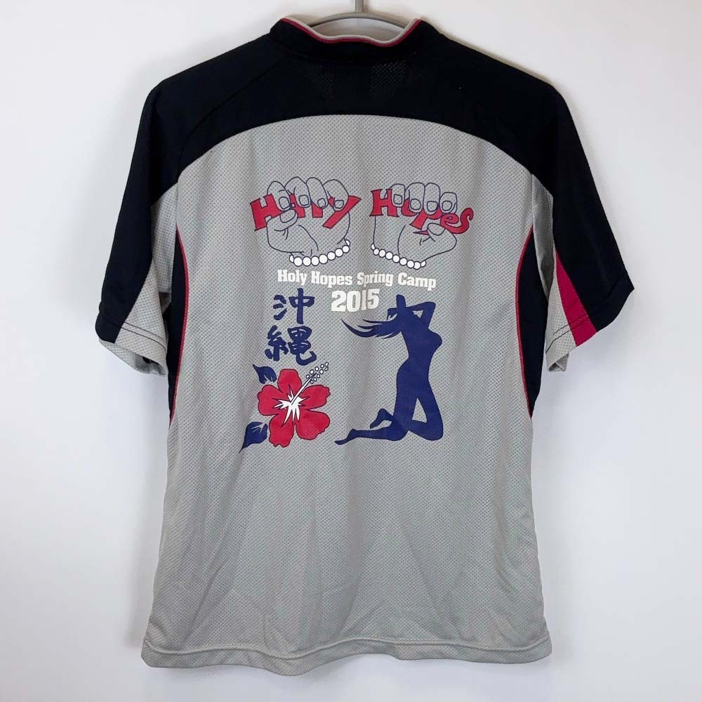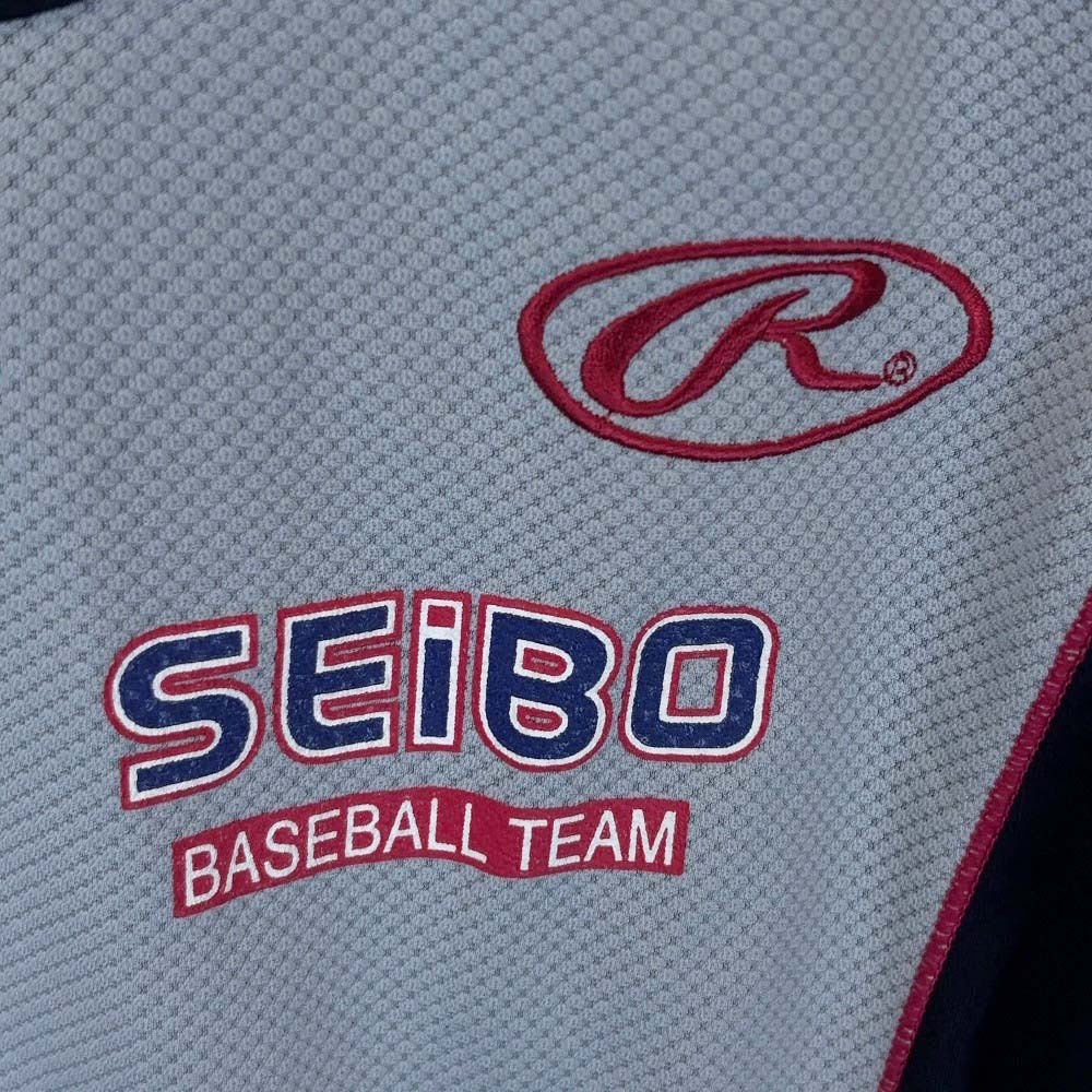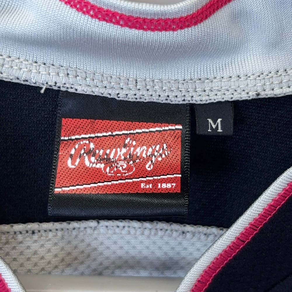 | 【仕様】 ブランド:ローリングス タイプ:聖望学園高校 野球部 ハーフジップシャツ 練習着 表記サイズ:M 身幅:約48cm 着丈:約68cm |